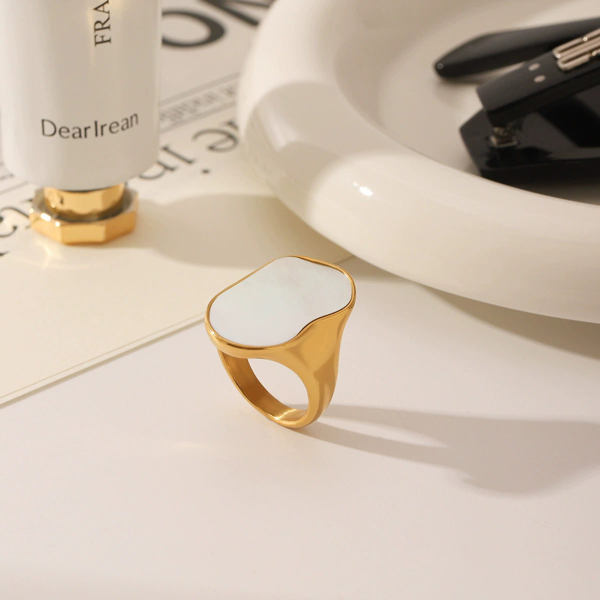 Wholesale Jewelry Titanium Steel Inlaid White Shell Geometric Ring For Women