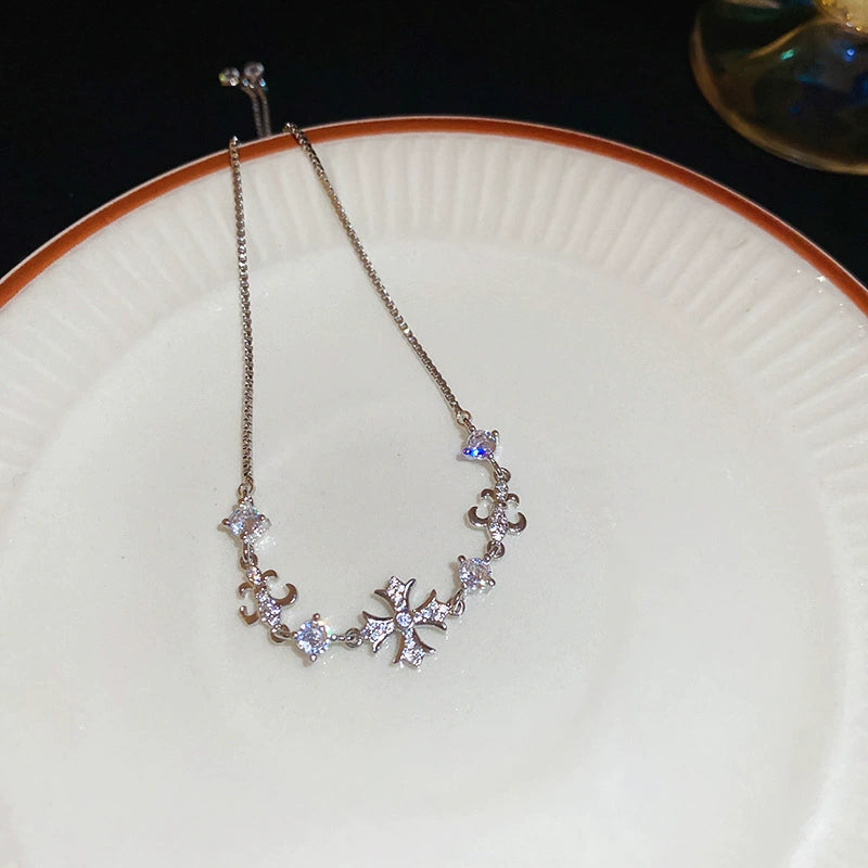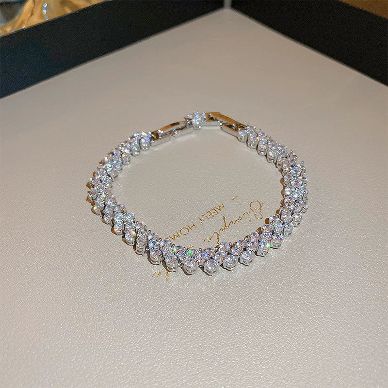 Wholesale Light Luxury Women's Copper Zircon Horseshoe Buckle Geometric Bracelet 18K Real Gold Electroplated