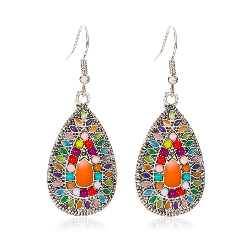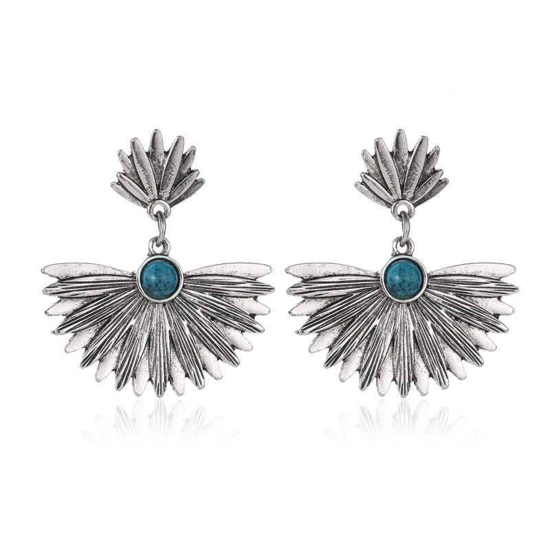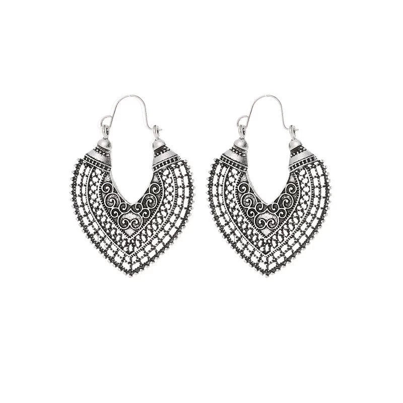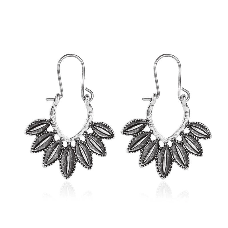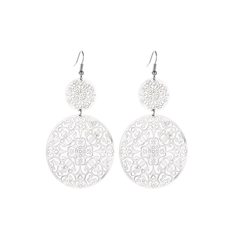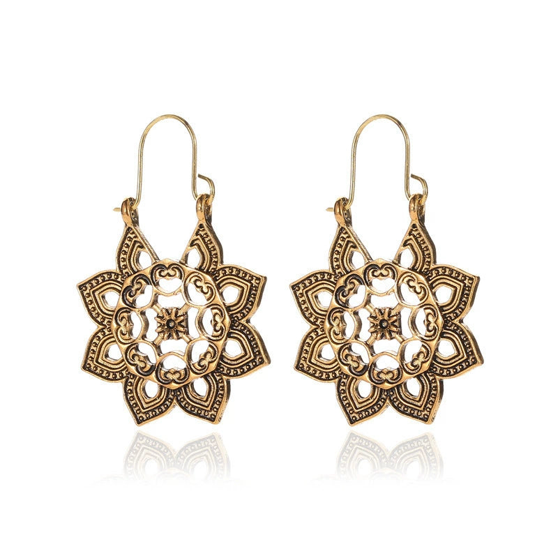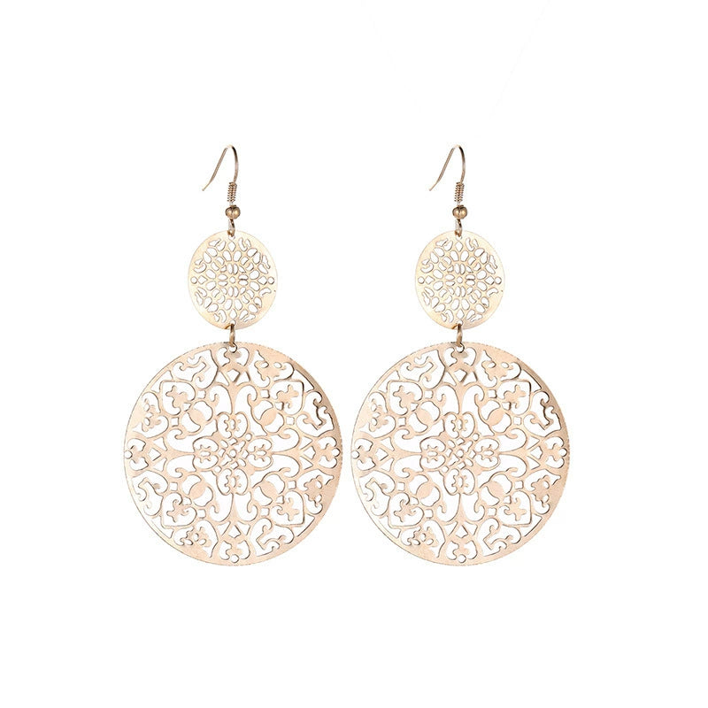 Wholesale Metal Hollow Flower Earrings With Geometric Pattern Retro Bohemian Style Electroplated