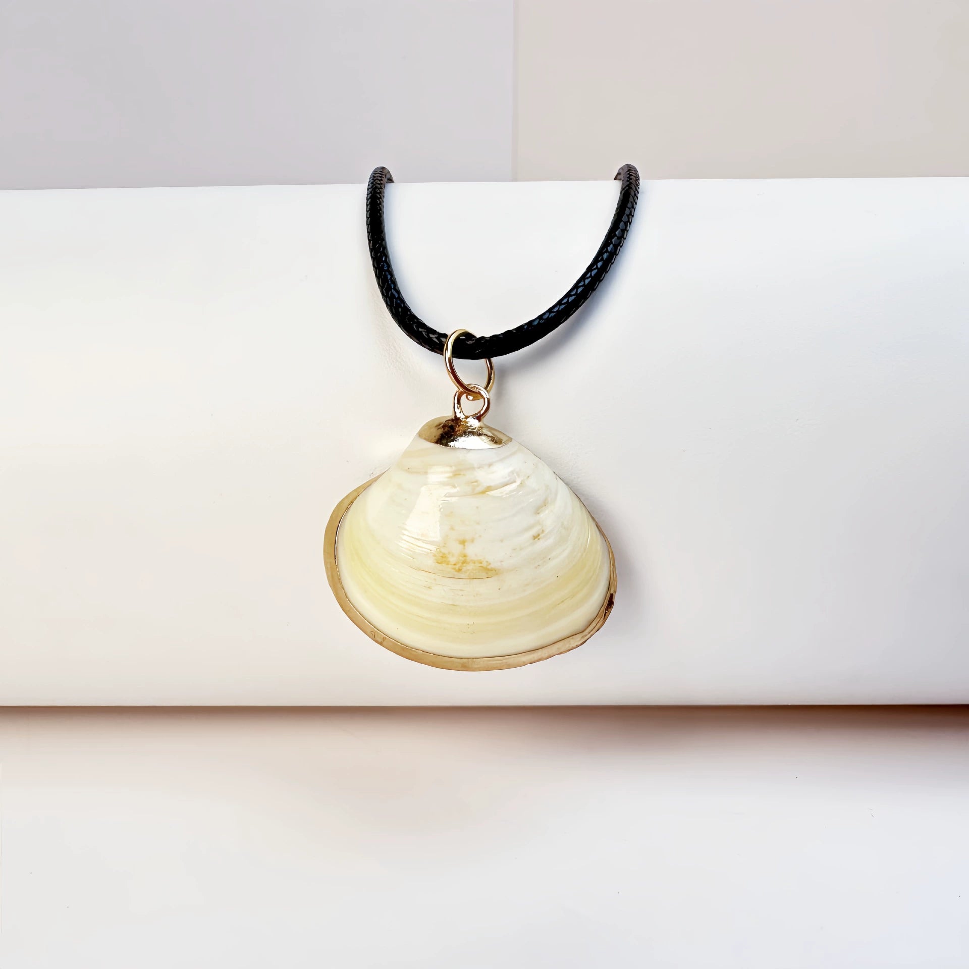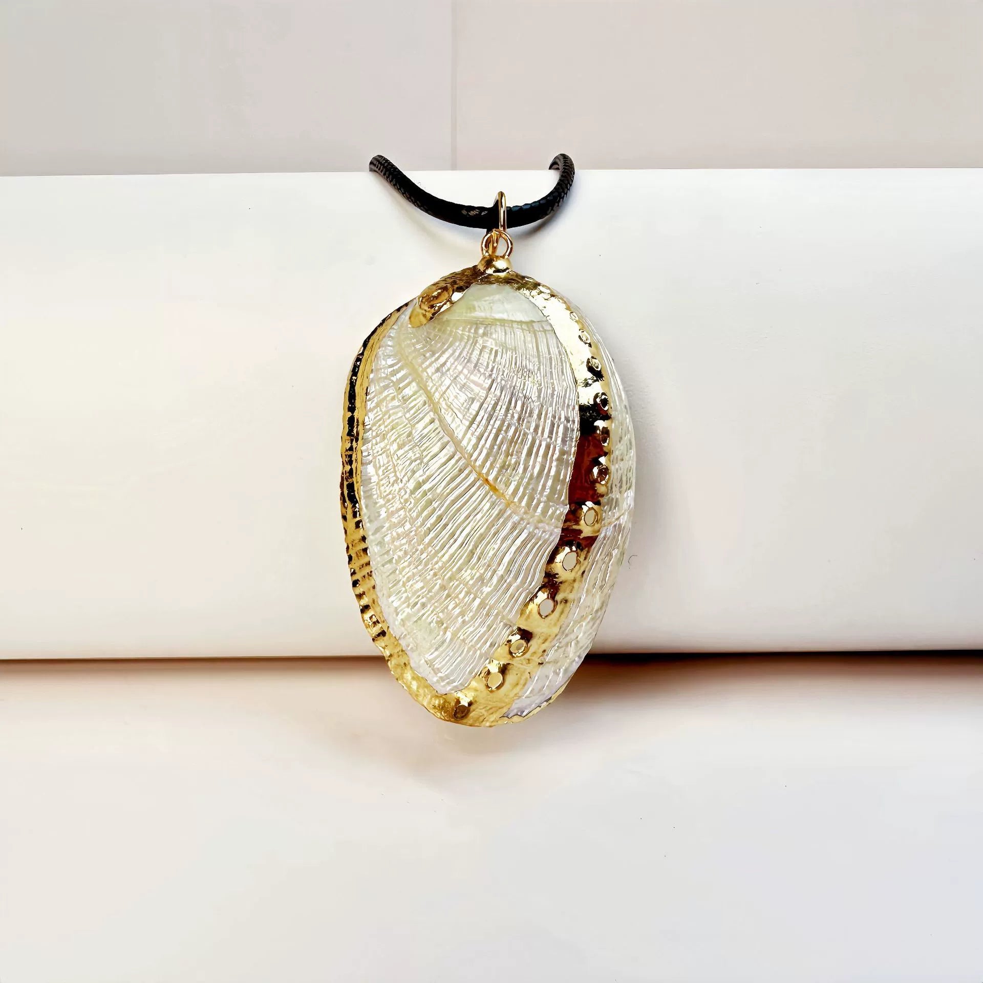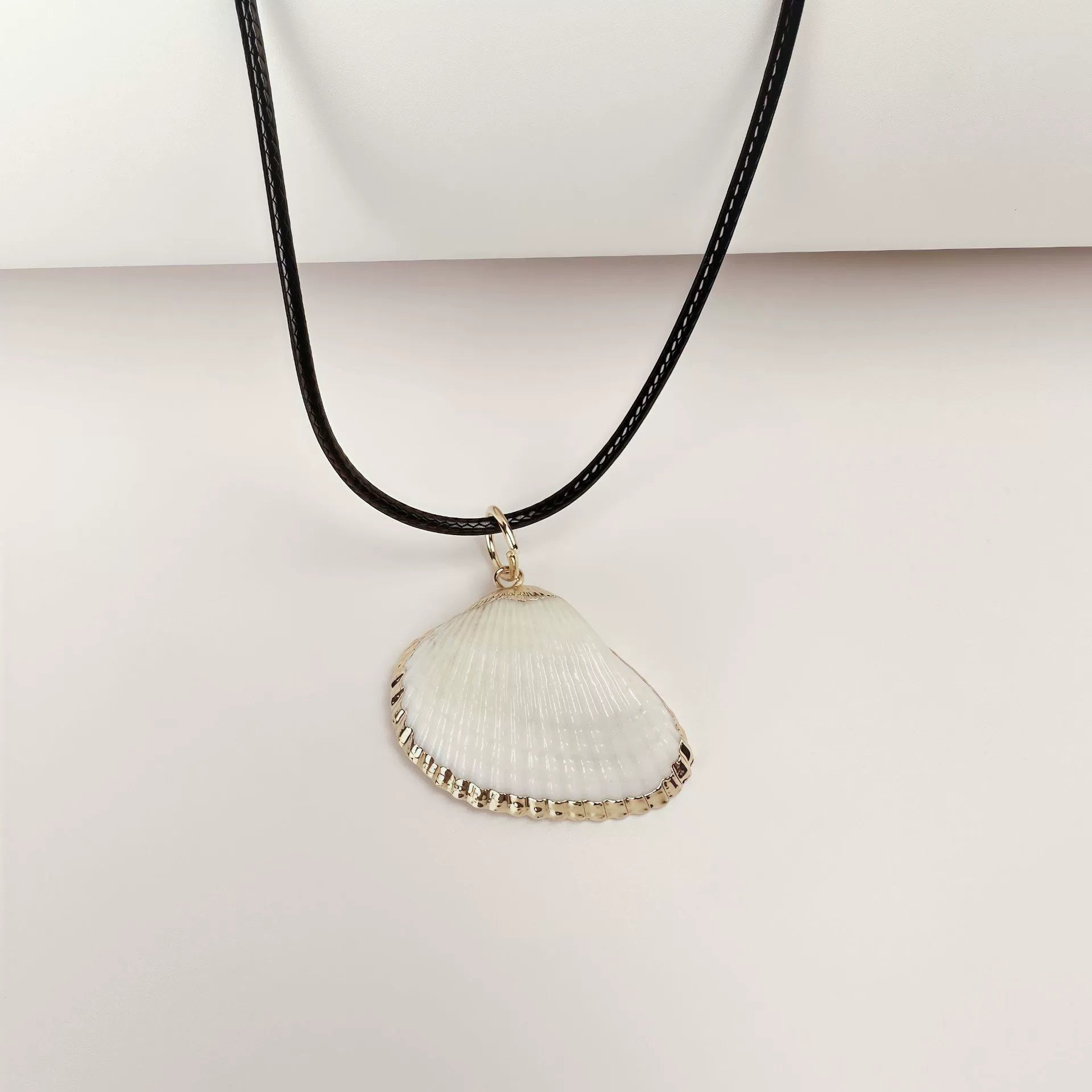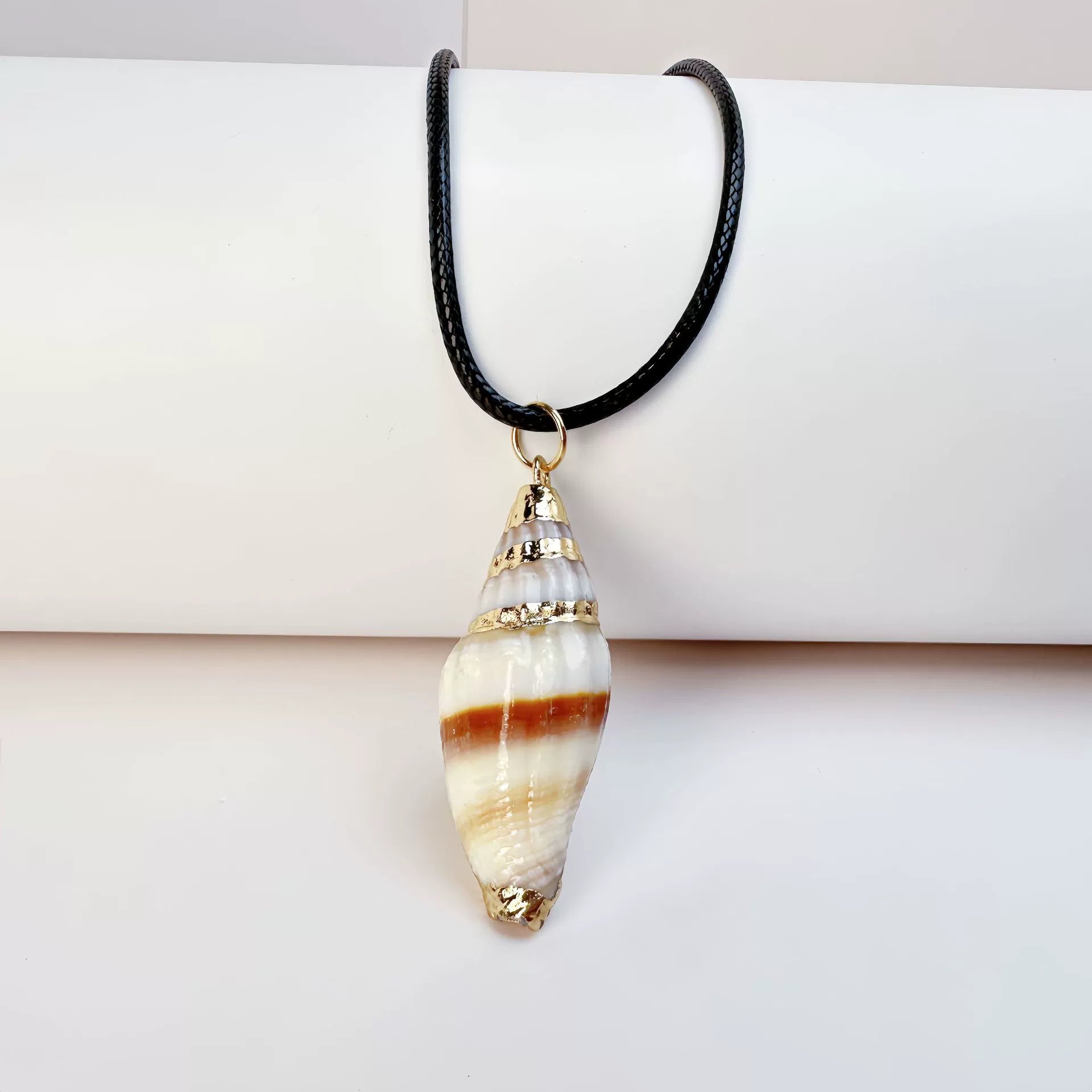 Wholesale Minimalist Waxed Leather Rope Natural Conch Shell Necklaces With Electroplated Gold Edge
