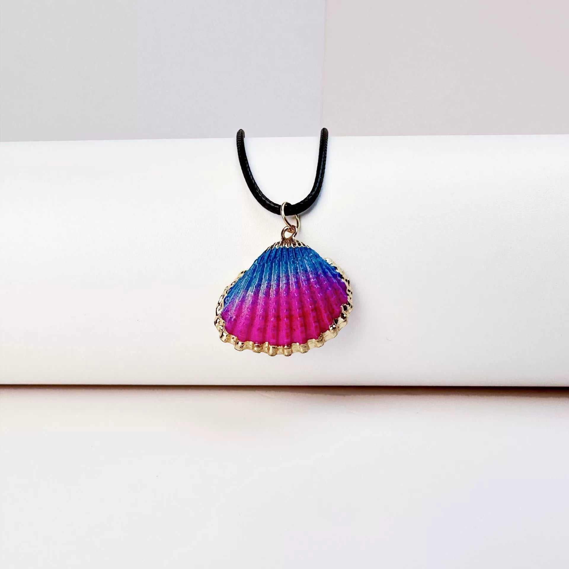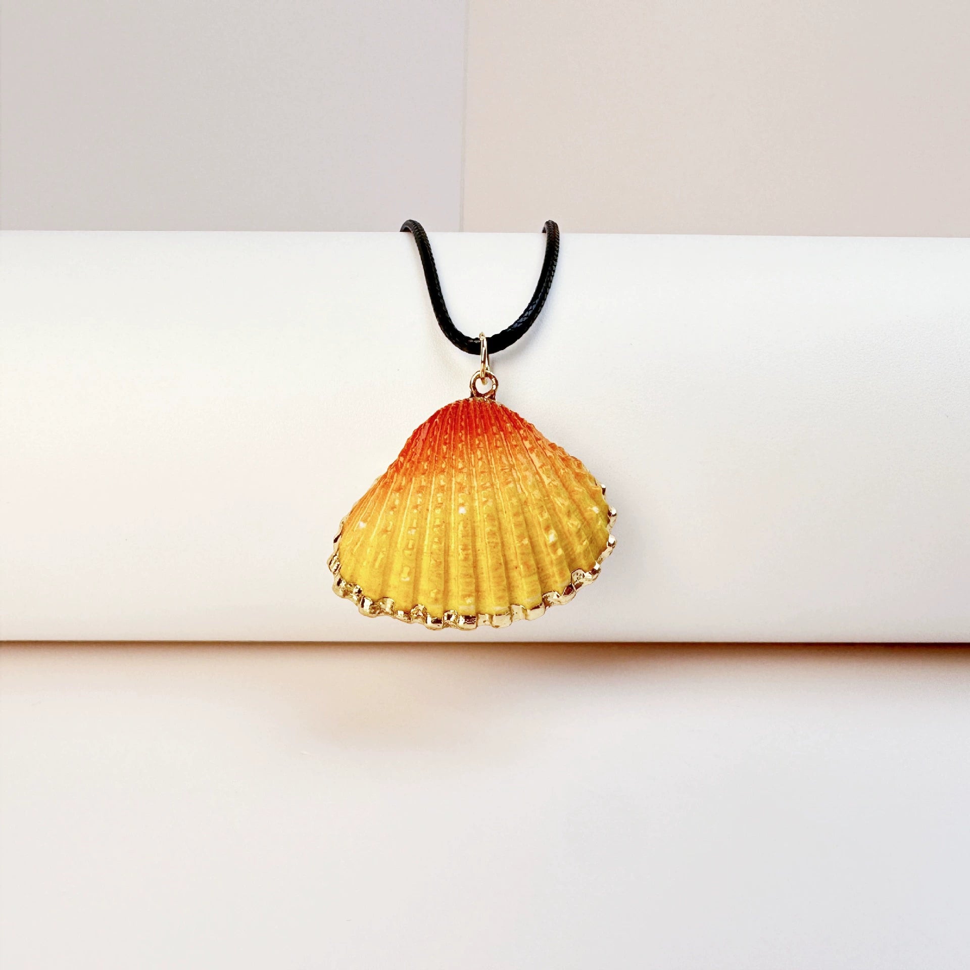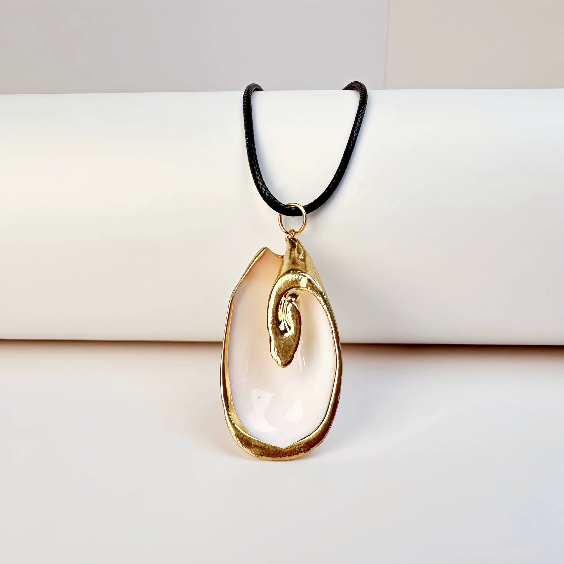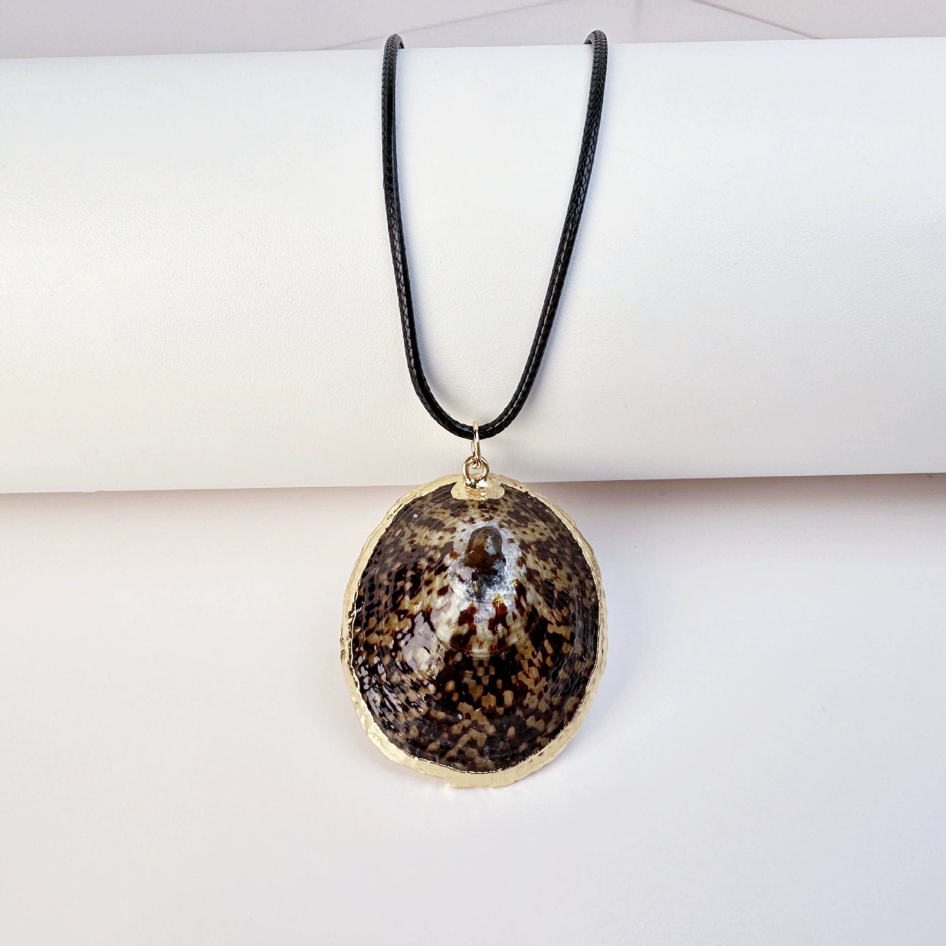 Wholesale Minimalist Waxed Leather Rope Natural Conch Shell Necklaces With Electroplated Gold Edge
