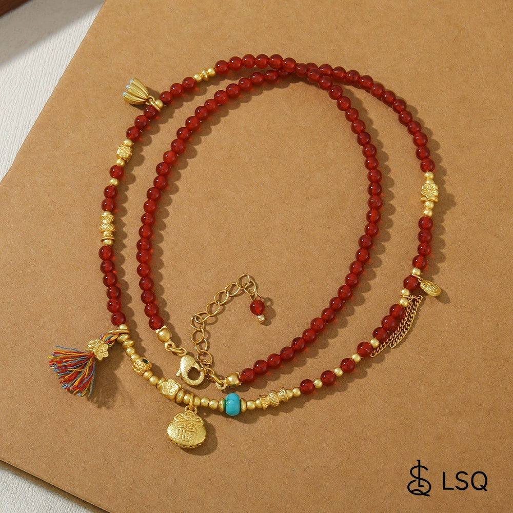 Wholesale Necklace Red Agate Copper Geometric Handmade Vintage Natural Stone