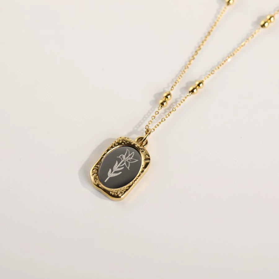 Wholesale Necklace Titanium Steel Retro Style Flower Pendant Double Layer