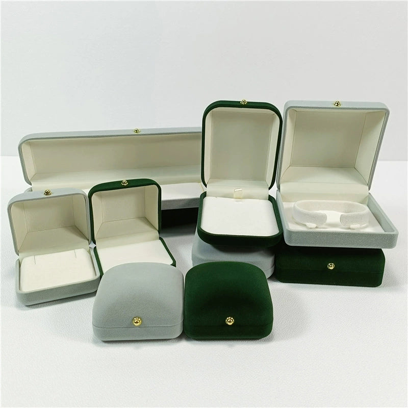 Wholesale Pearl Jewelry Box Made Of Gray Green Flannel For Earrings And Pendants