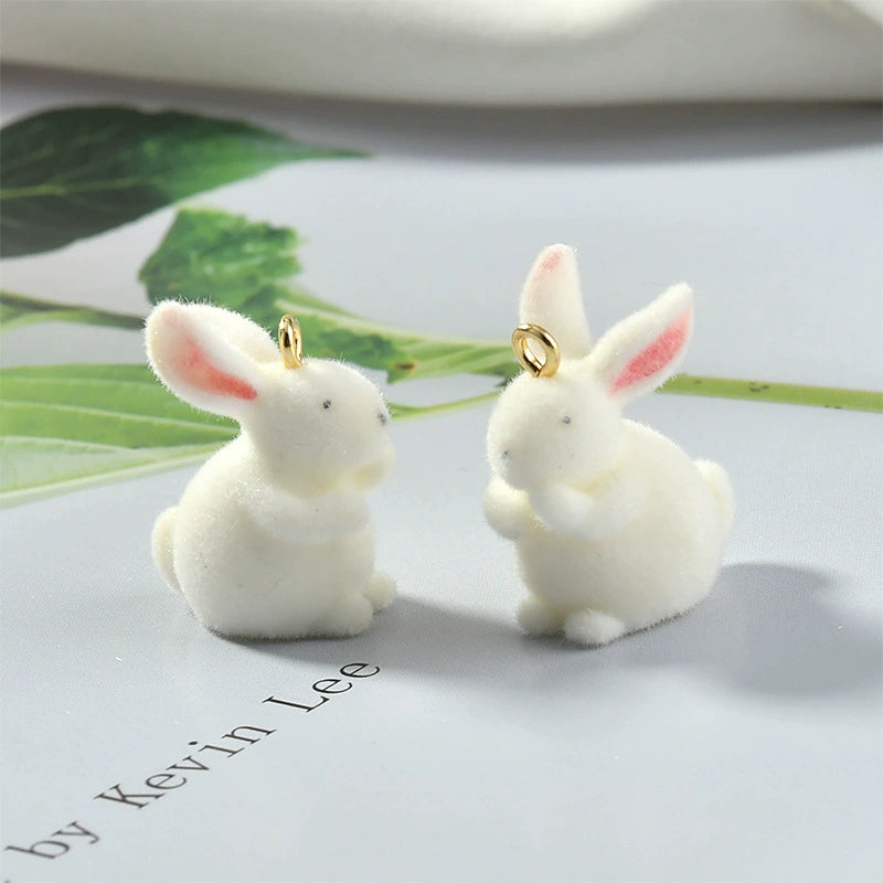 Wholesale Plush Rabbit Plastic Resin Flocking Jewelry Earrings Pendant Accessories