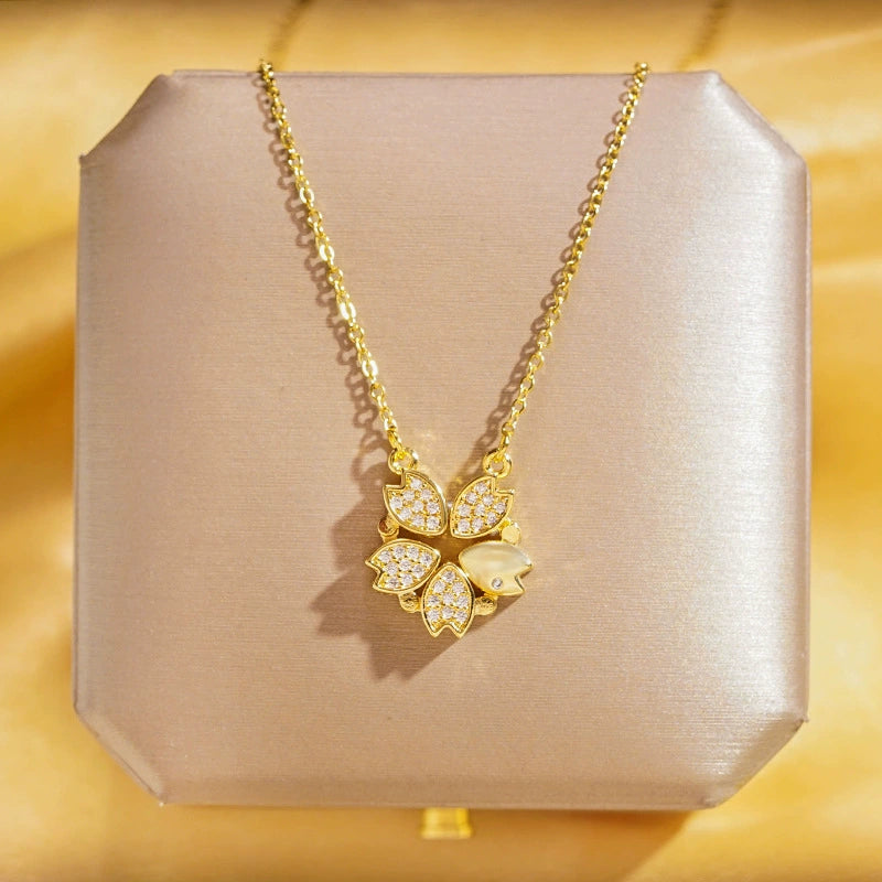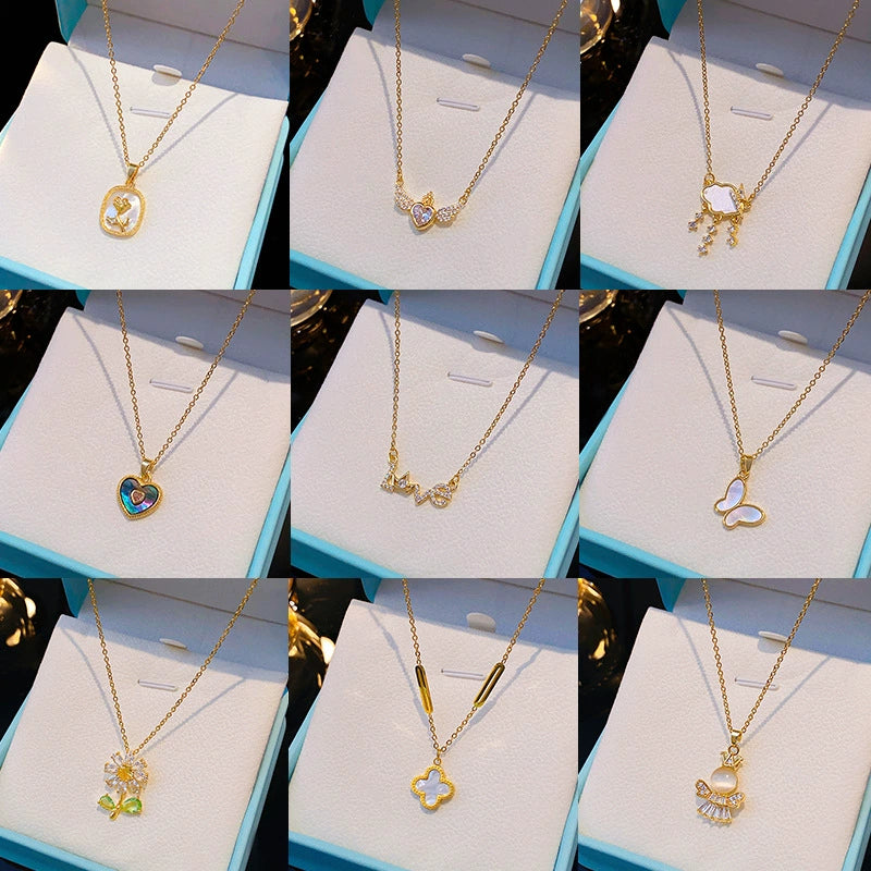 Wholesale Real Gold Electroplated Geometric Pattern Titanium Steel And Copper Necklace With Zircon And Pearl For Women Elegant Light Luxury Jewelry