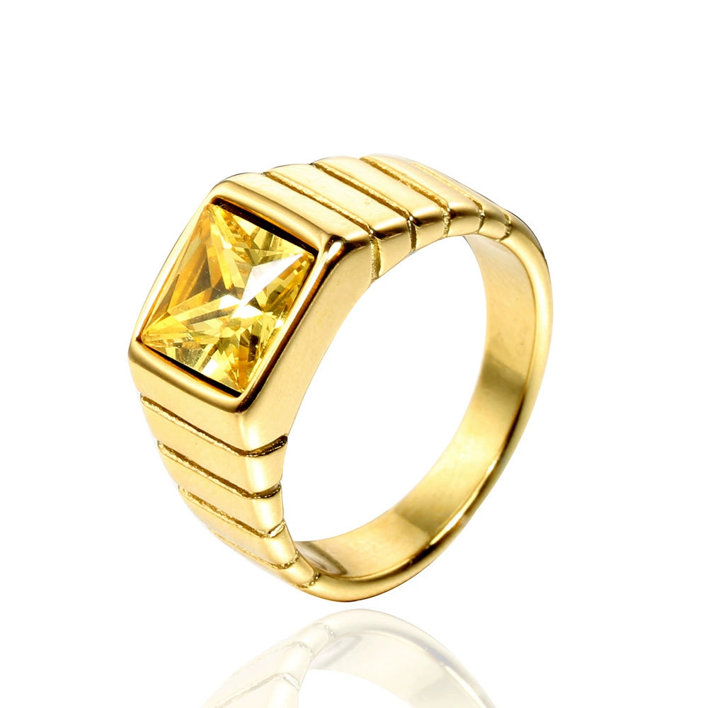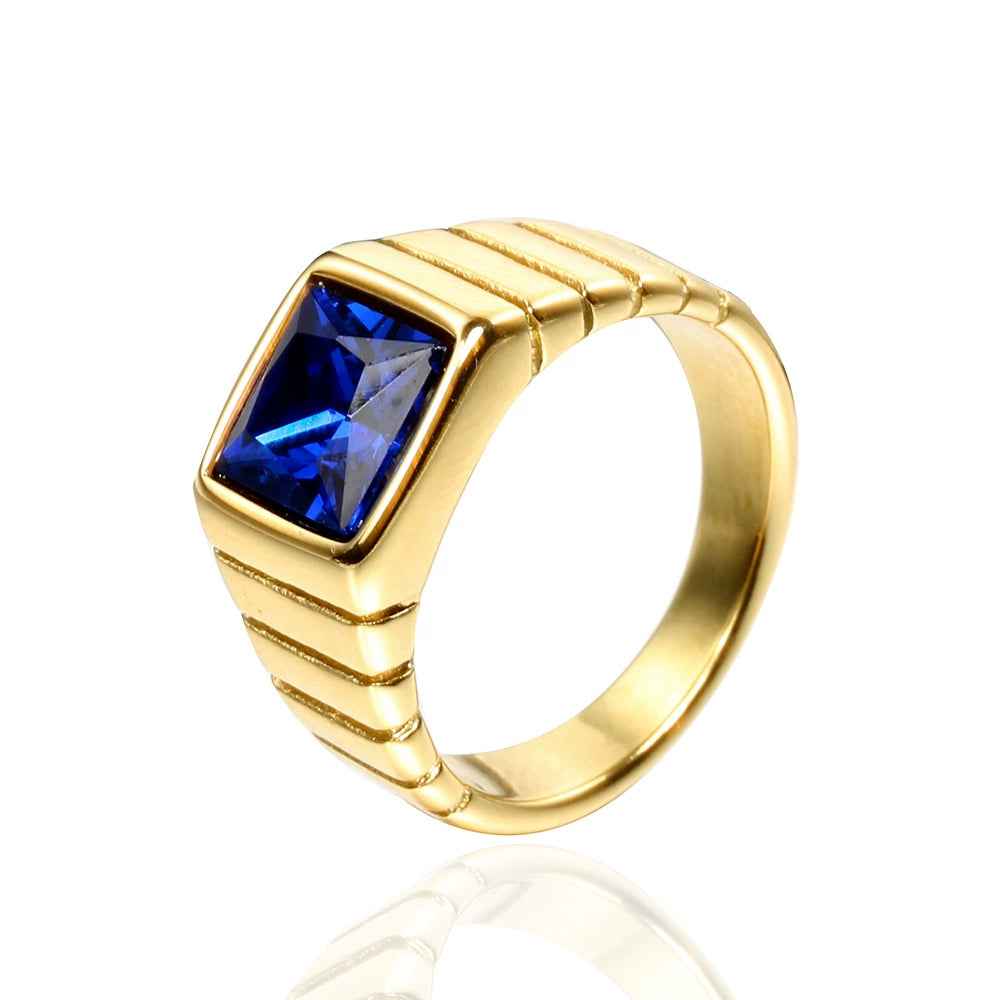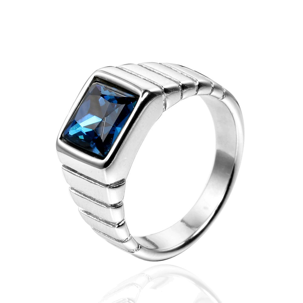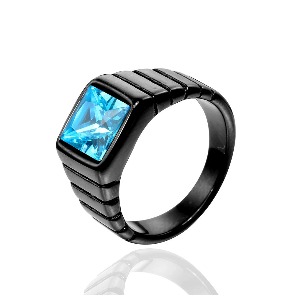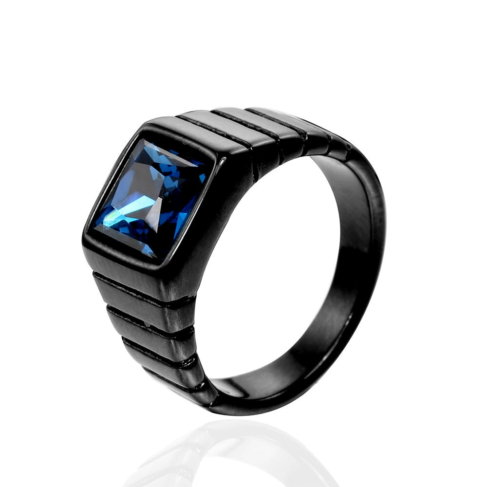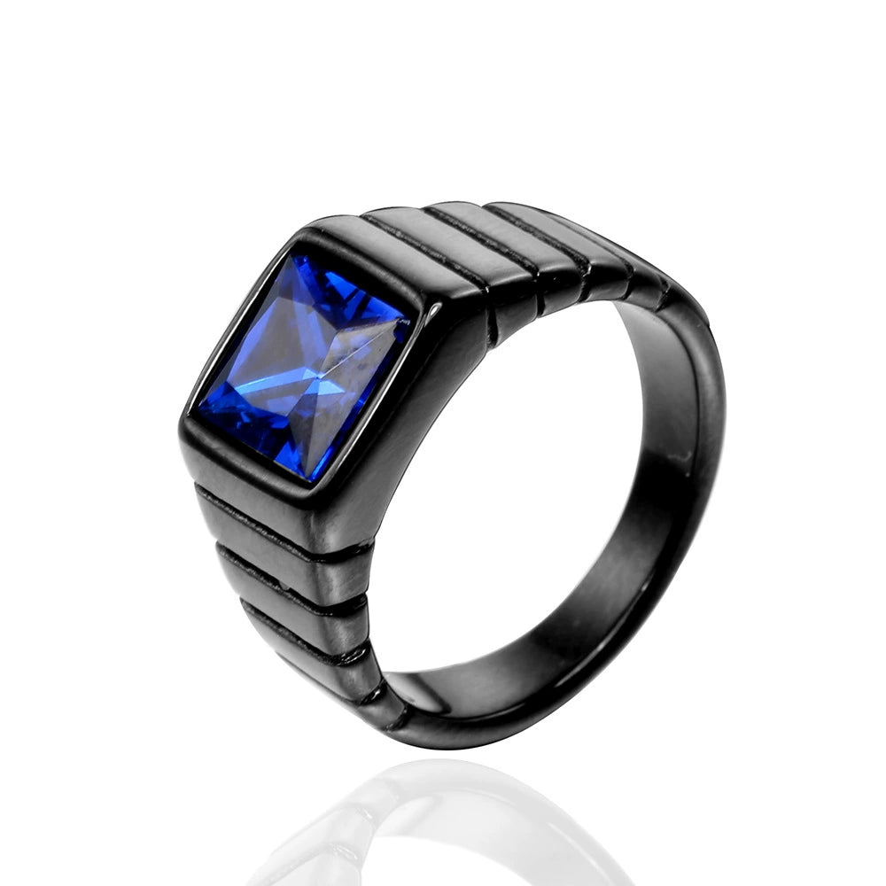 Wholesale Retro Geometric Style Sapphire Ring Titanium Steel Jewelry Electroplated Unisex