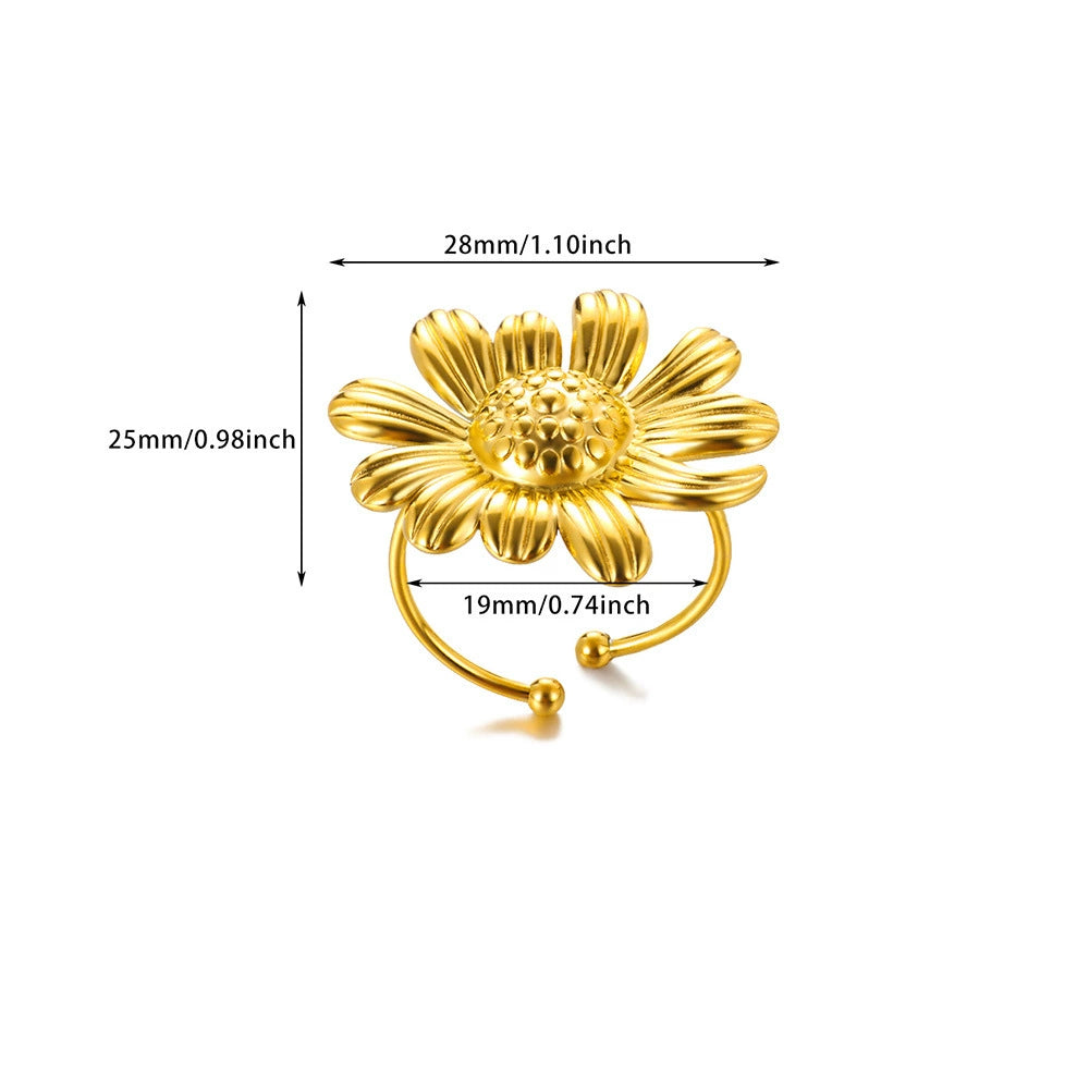 Wholesale Ring Stainless Steel Ins Style Stereo Flower Leaf Conch Electroplated