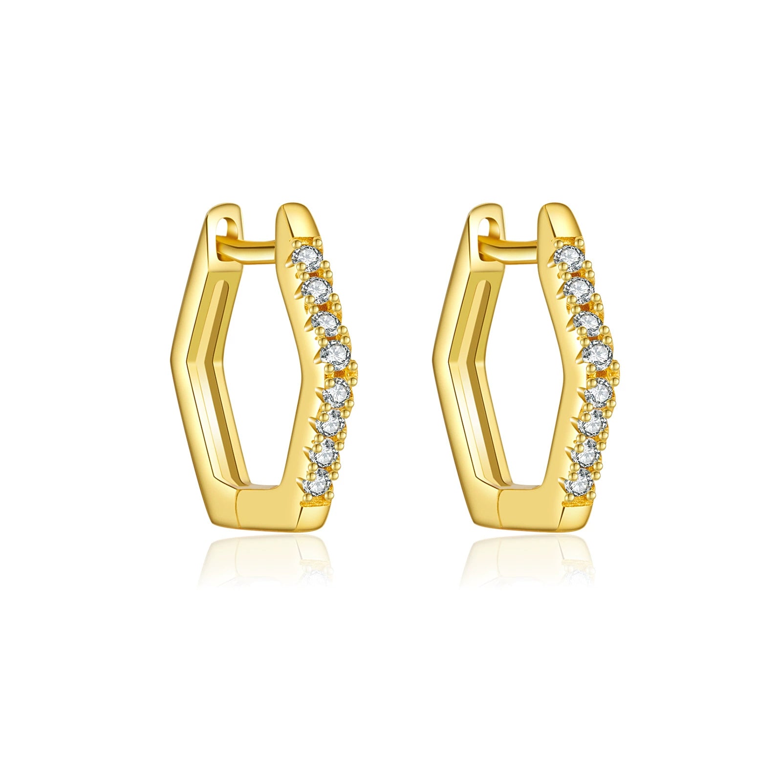 Wholesale S925 Sterling Silver Hexagonal Electroplated Platinum 18K Gold Zircon Earrings Retro Classic Style