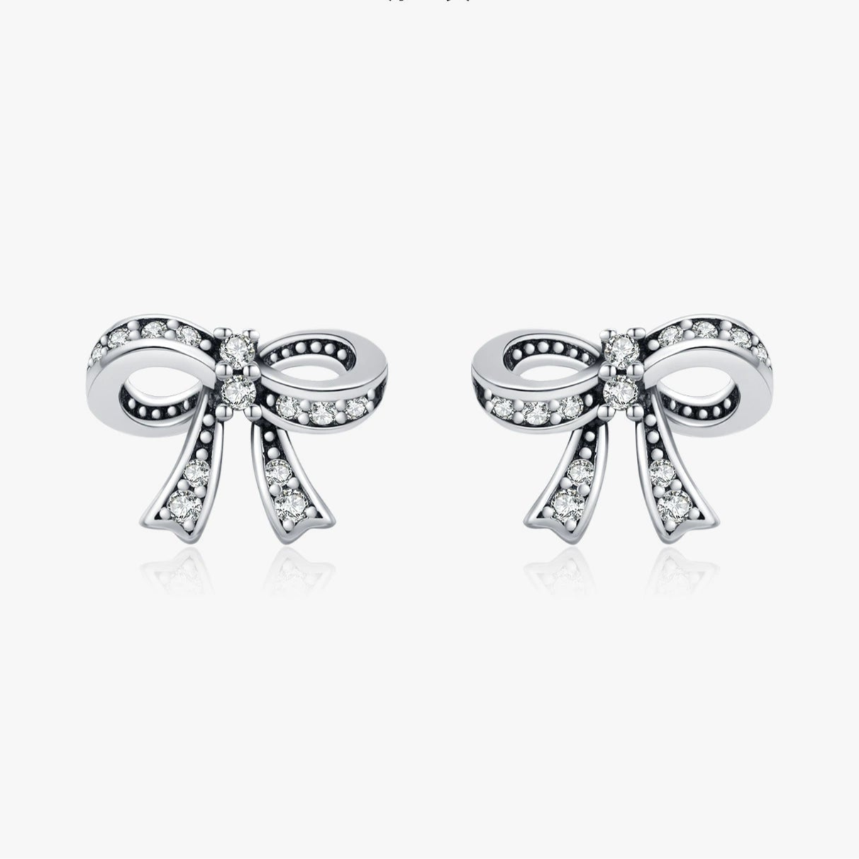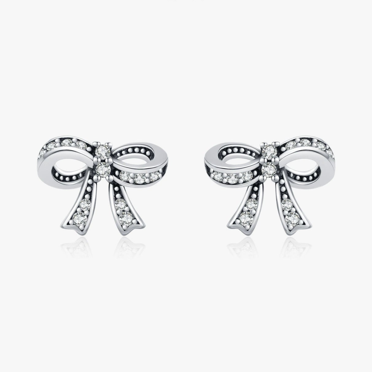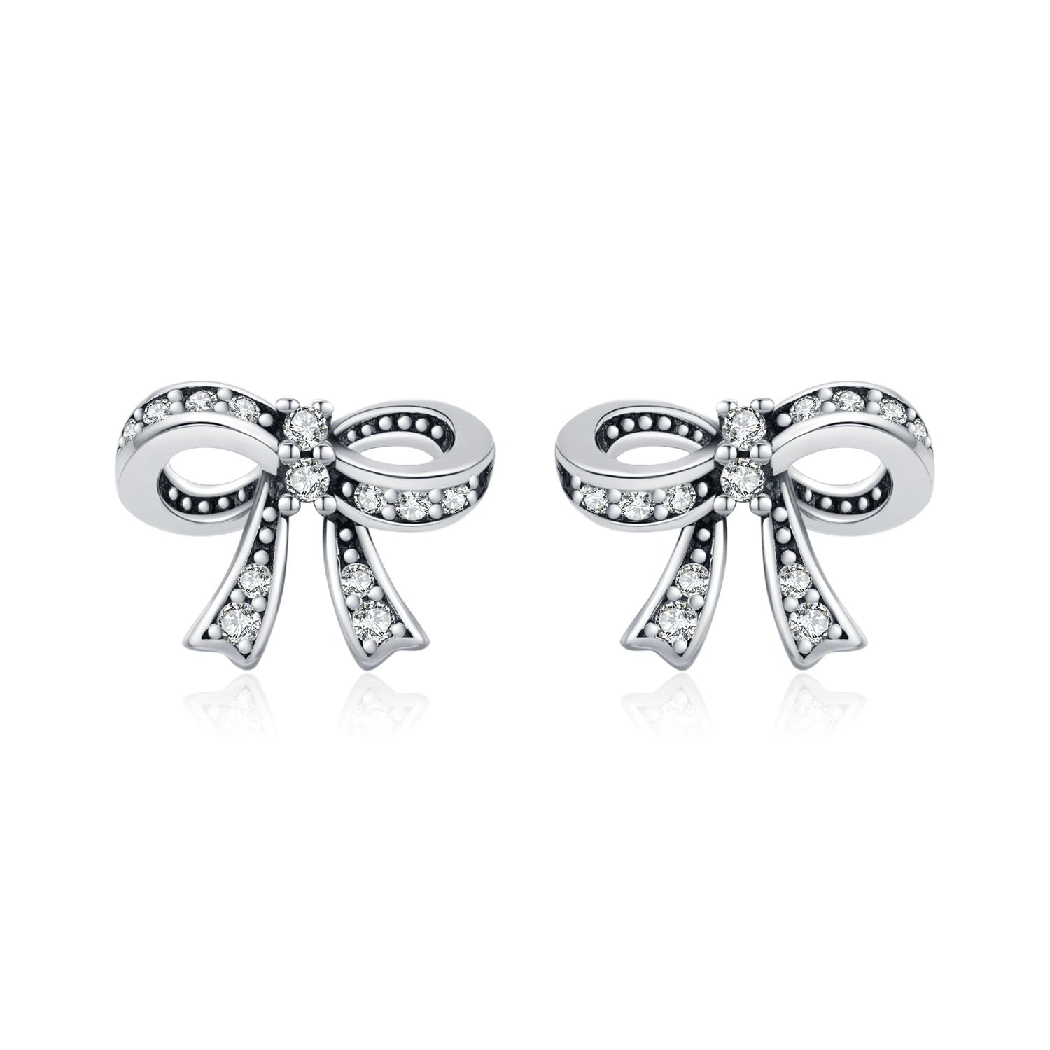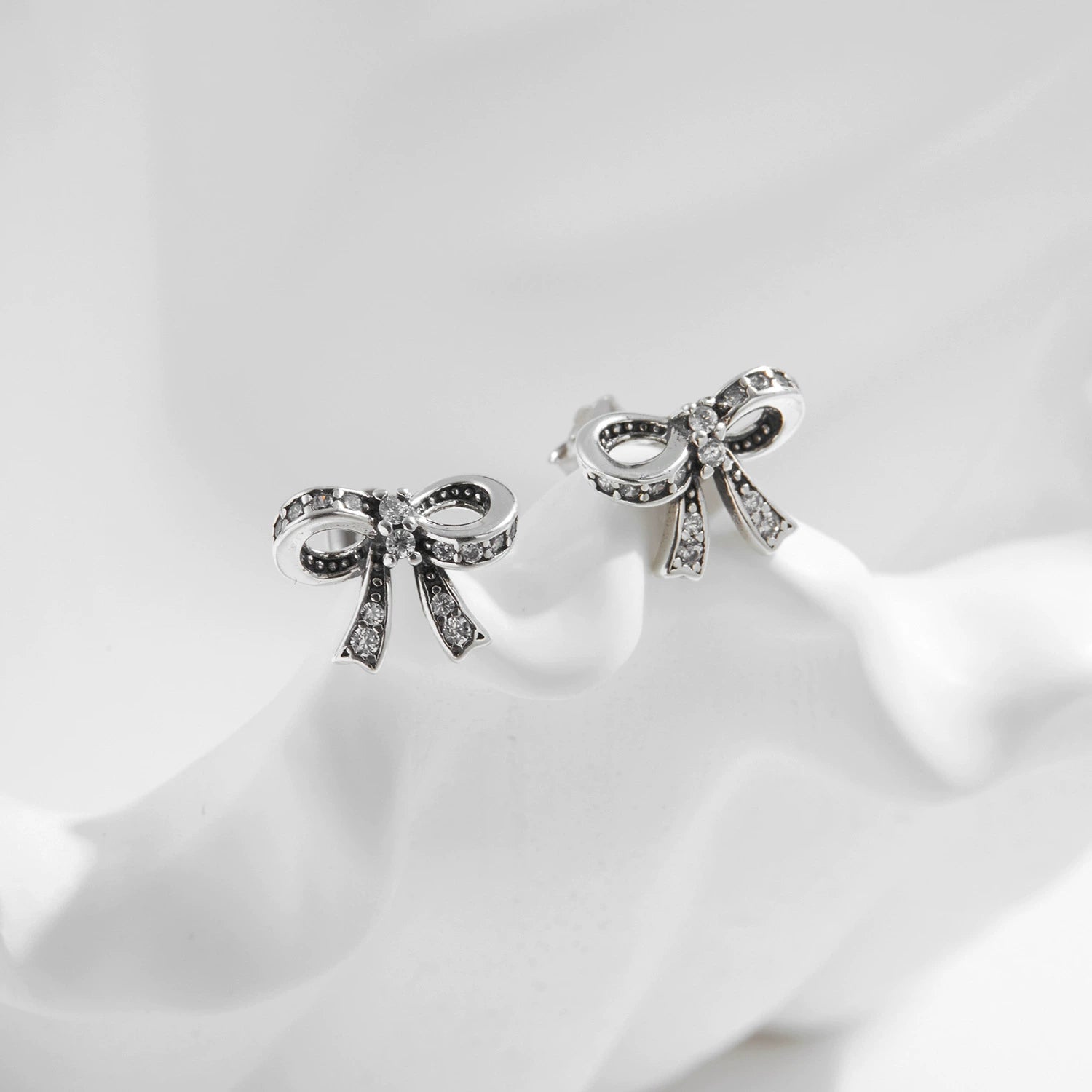 Wholesale Silver Sweet Cool Style Bow Shiny Diamond Earrings For Women With Old Craft