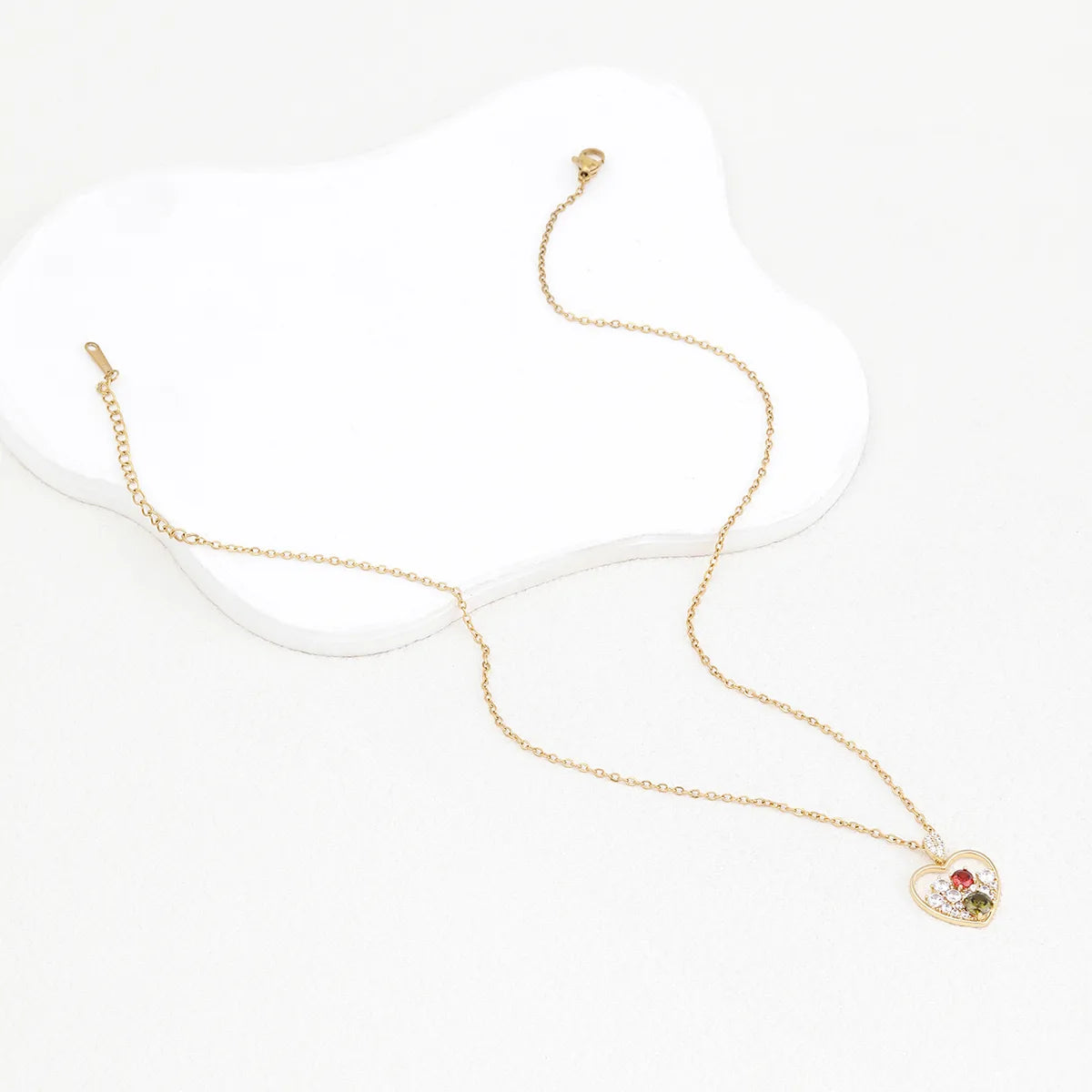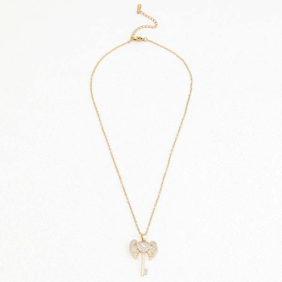 Wholesale Simple Style Heart Shape Key Stainless Steel Copper Enamel Plating Inlay Zircon Pendant Necklace