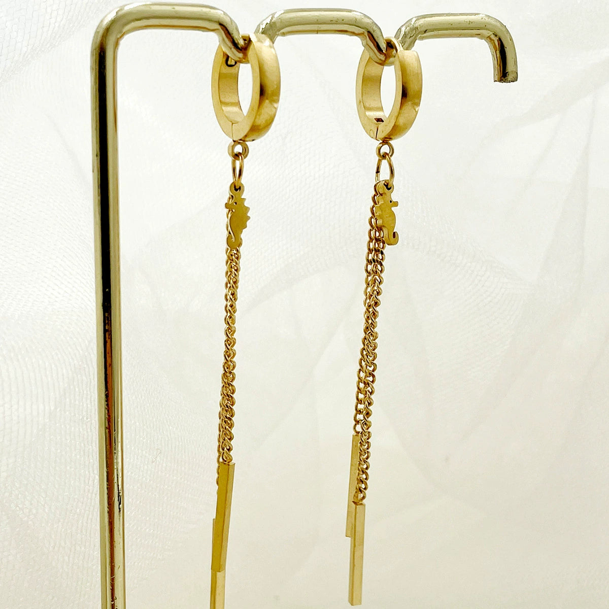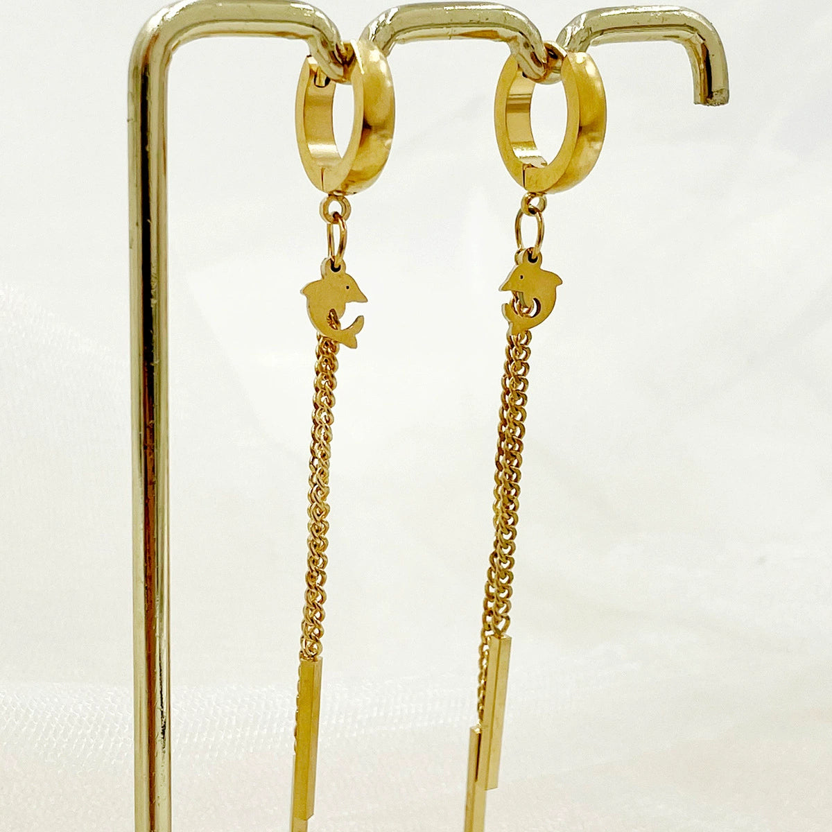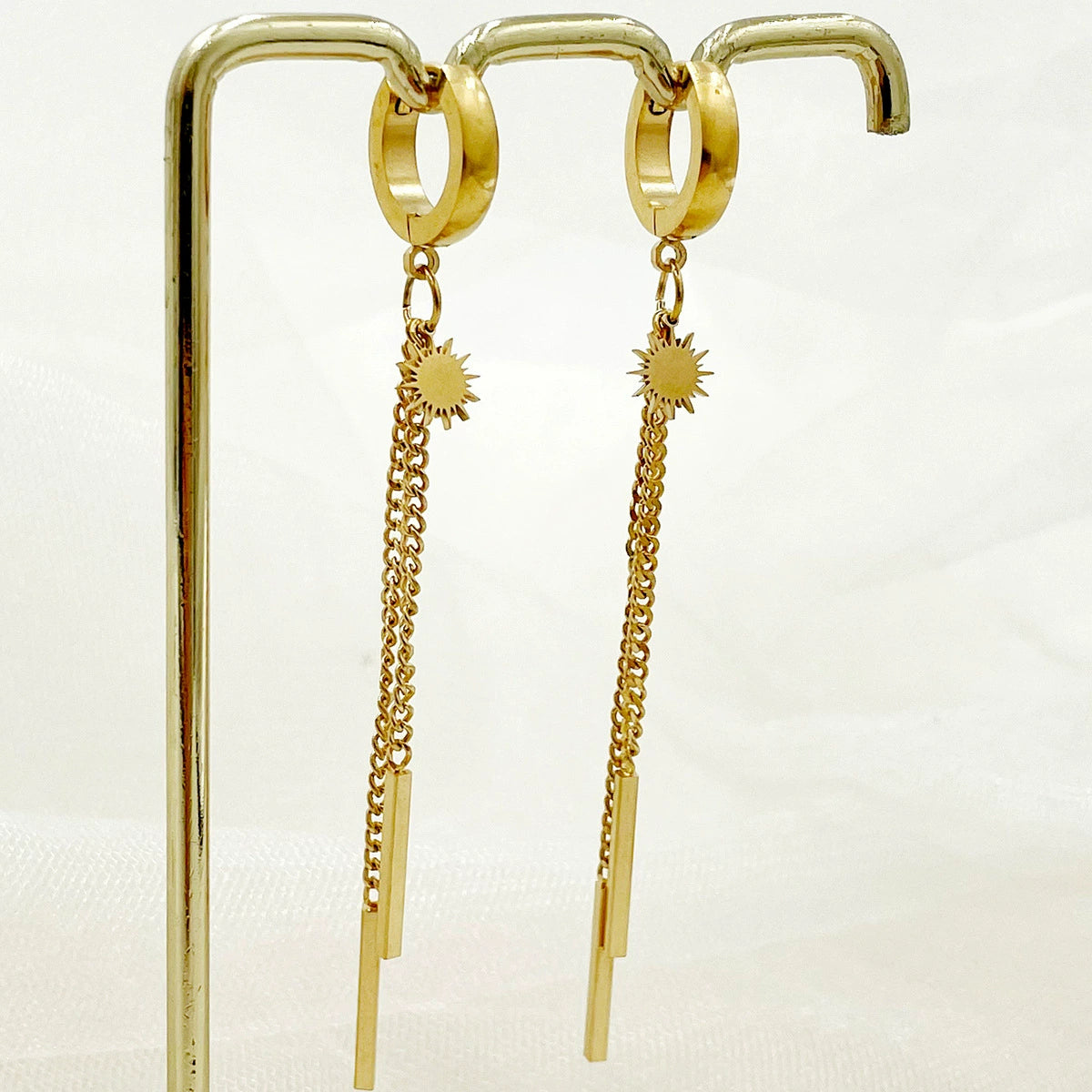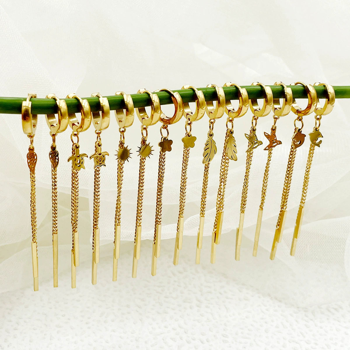 Wholesale Stainless Steel Chain Tassel Earrings Electroplated With Sun Moon Stars Flowers Animal Shapes