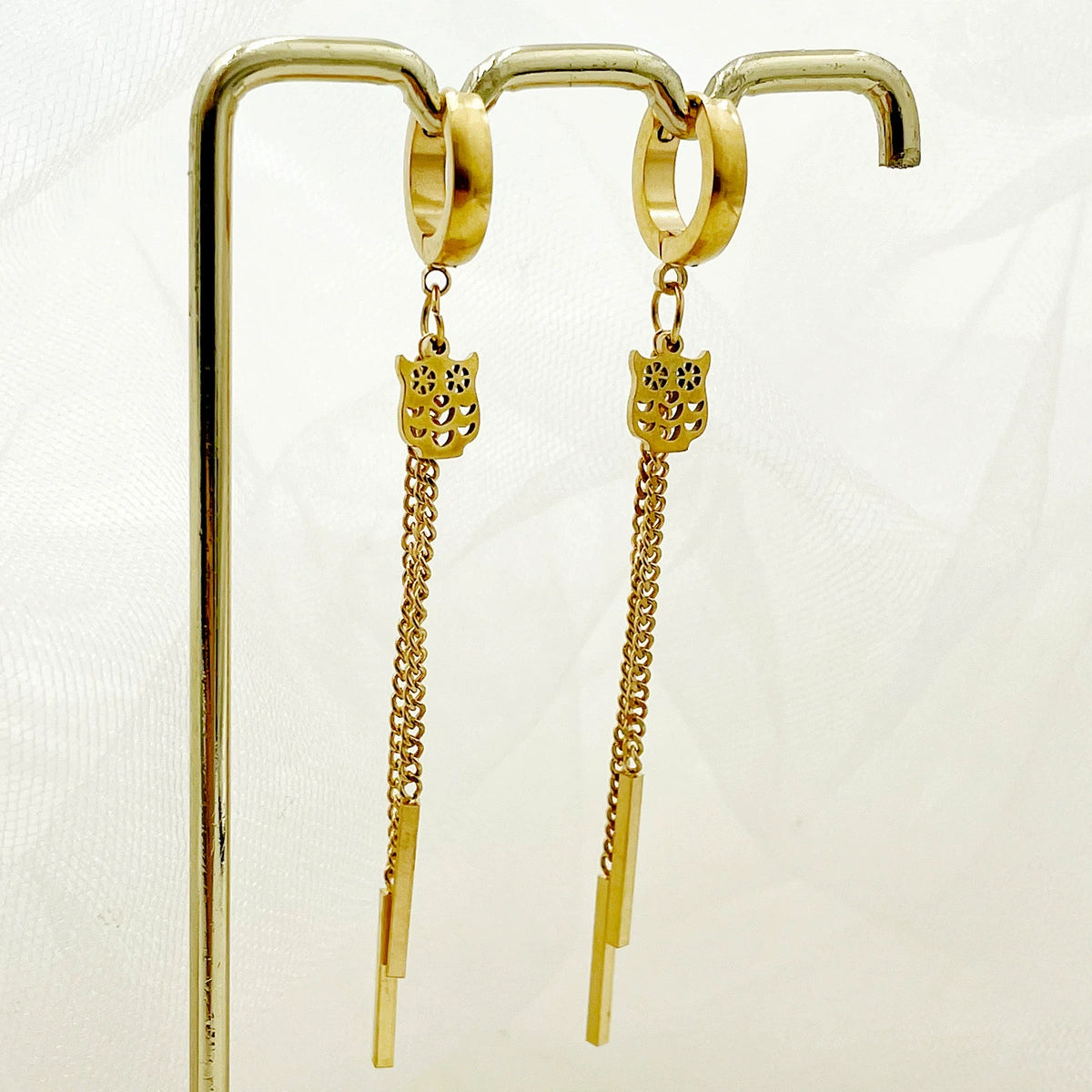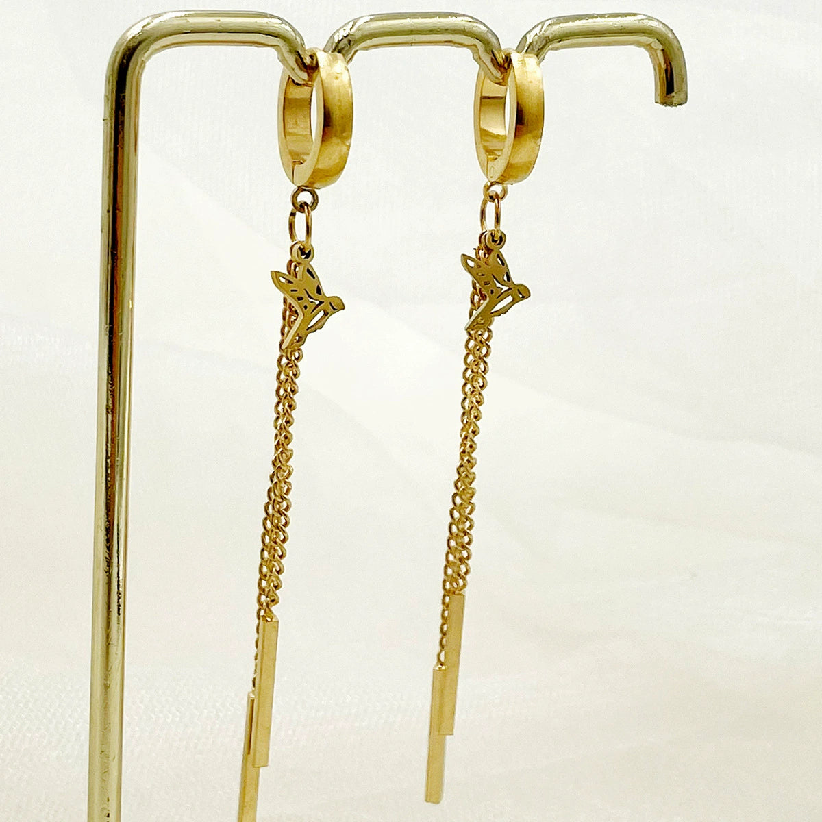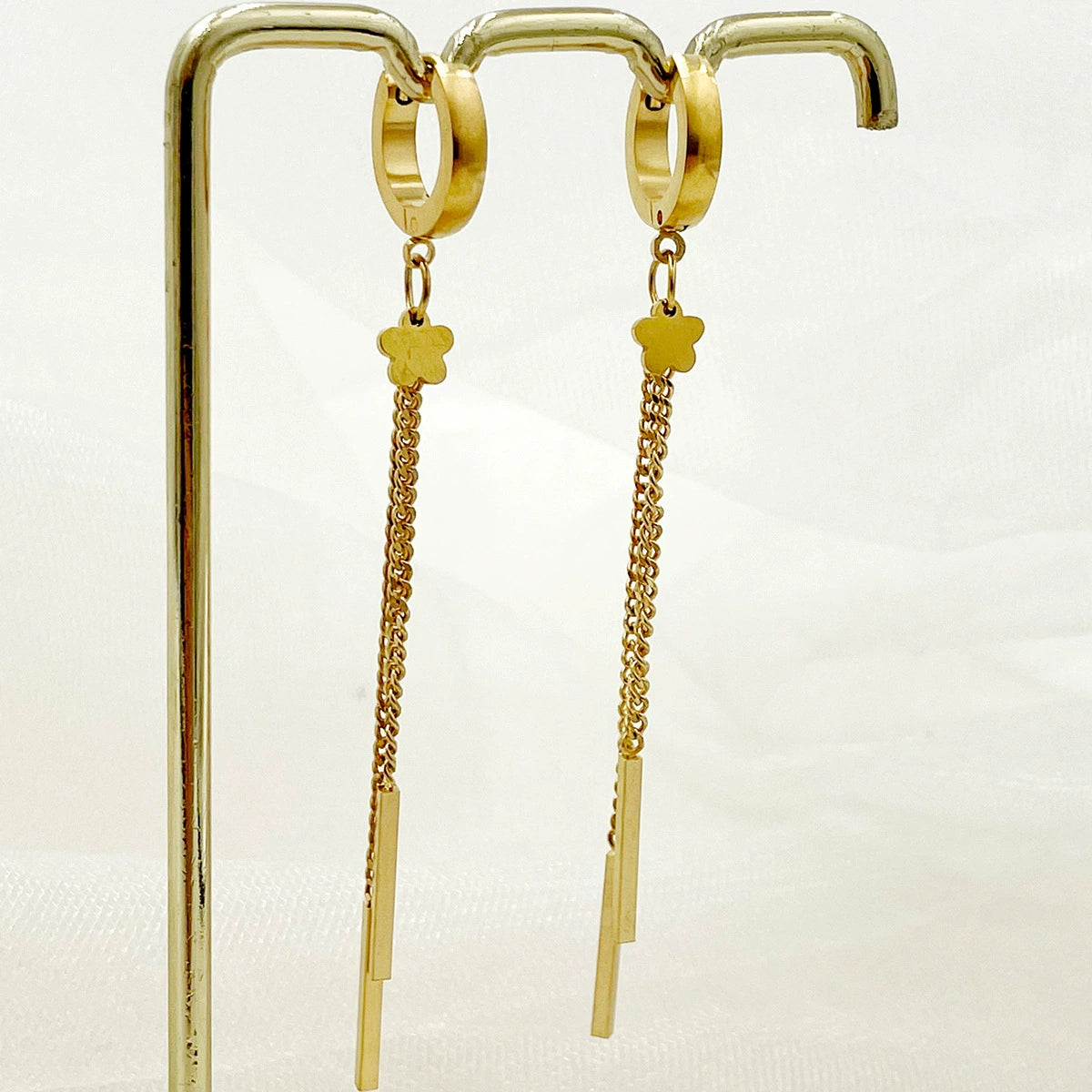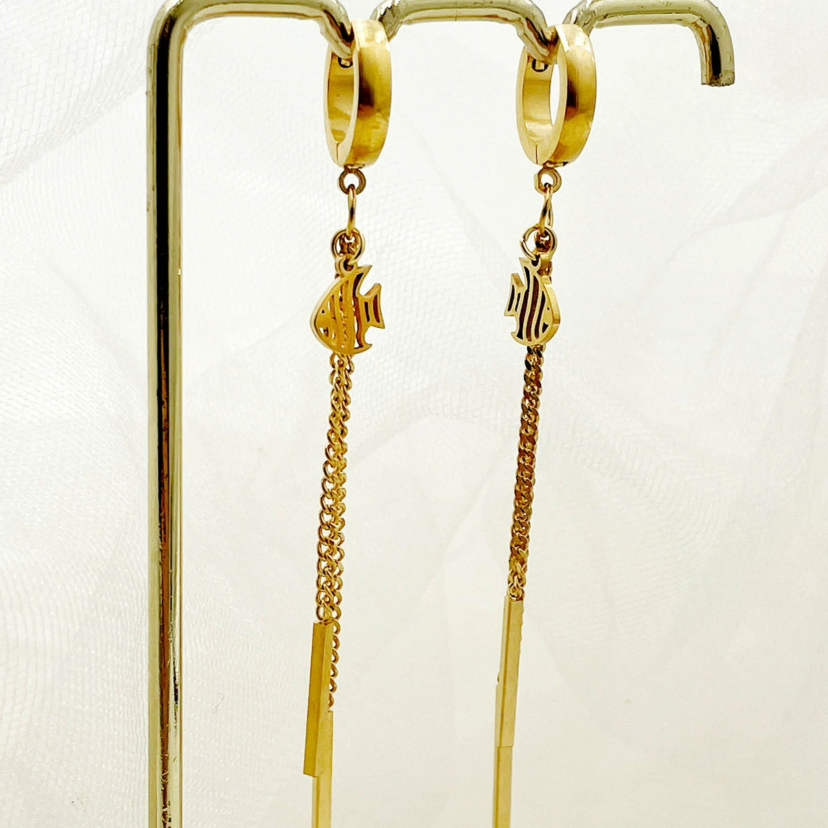 Wholesale Stainless Steel Chain Tassel Earrings Electroplated With Sun Moon Stars Flowers Animal Shapes