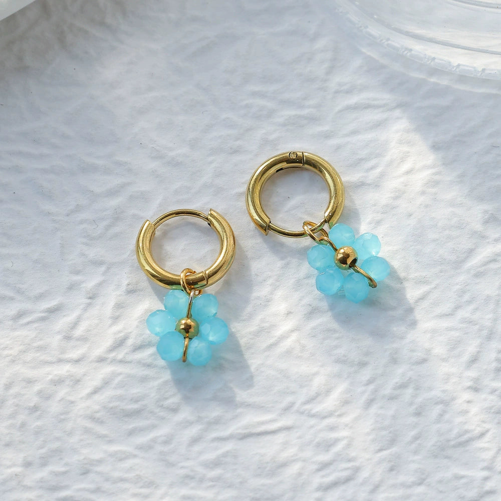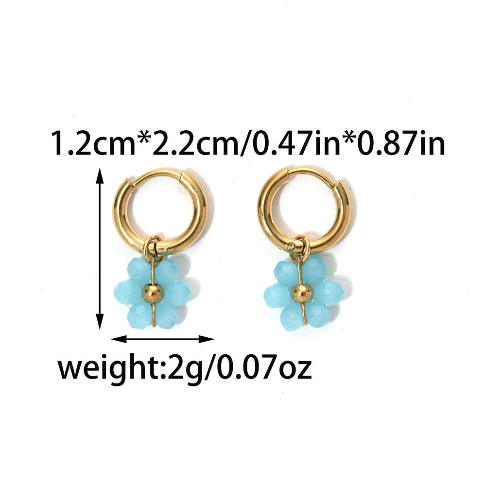 Wholesale Stainless Steel Crystal Flower Beaded Earrings With Electroplating Processing