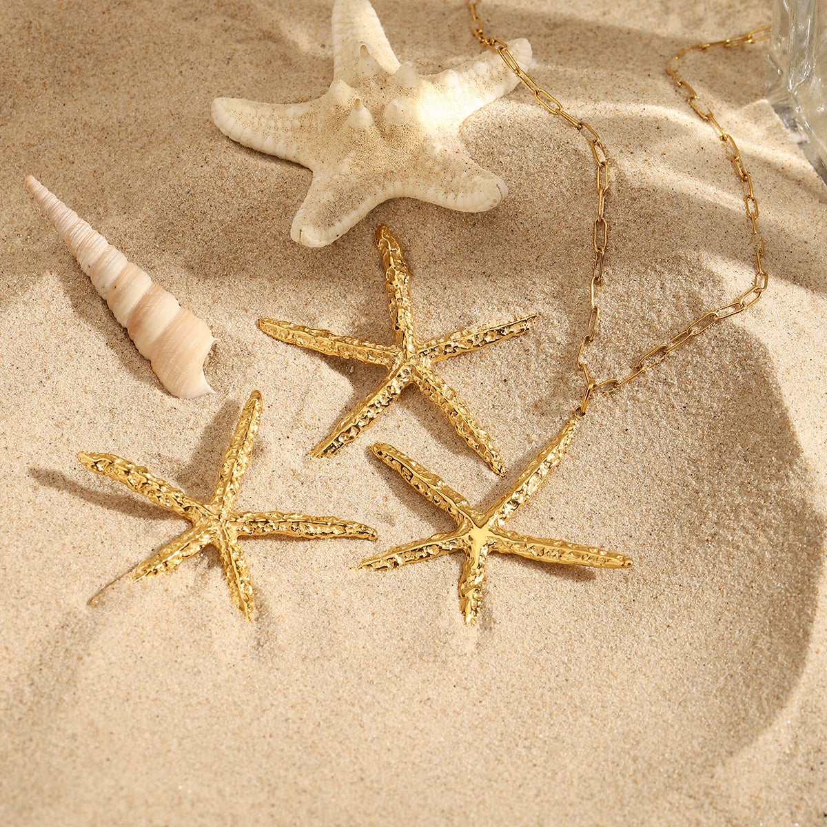 Wholesale Stainless Steel Geometric Animal Style Electroplated Starfish Earrings For Women