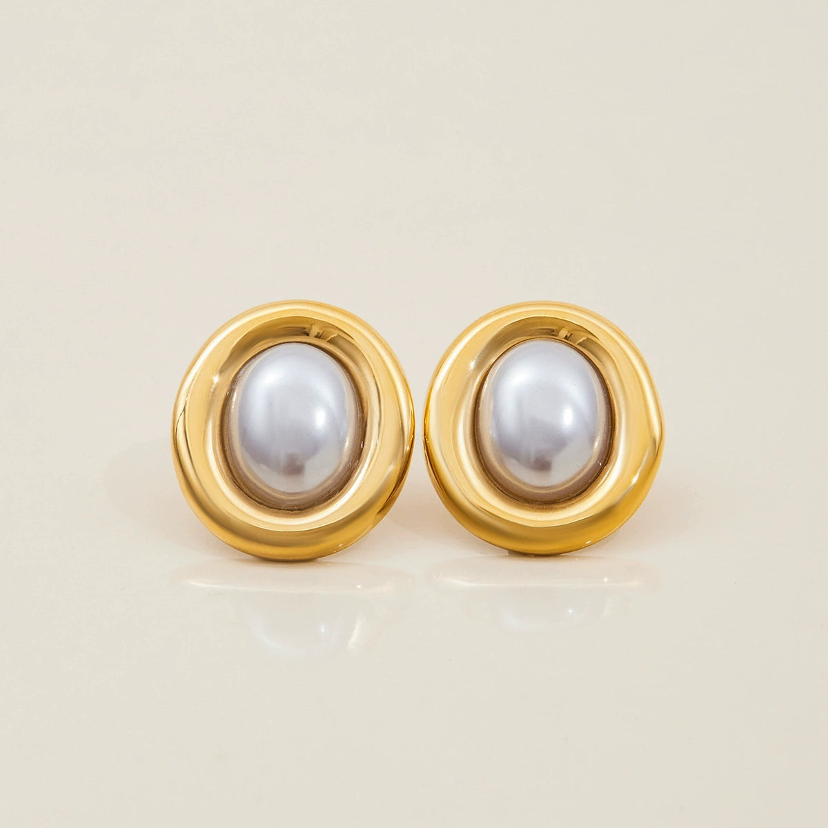 Wholesale Stainless Steel Retro Pearl Earrings For Women Geometric Electroplated