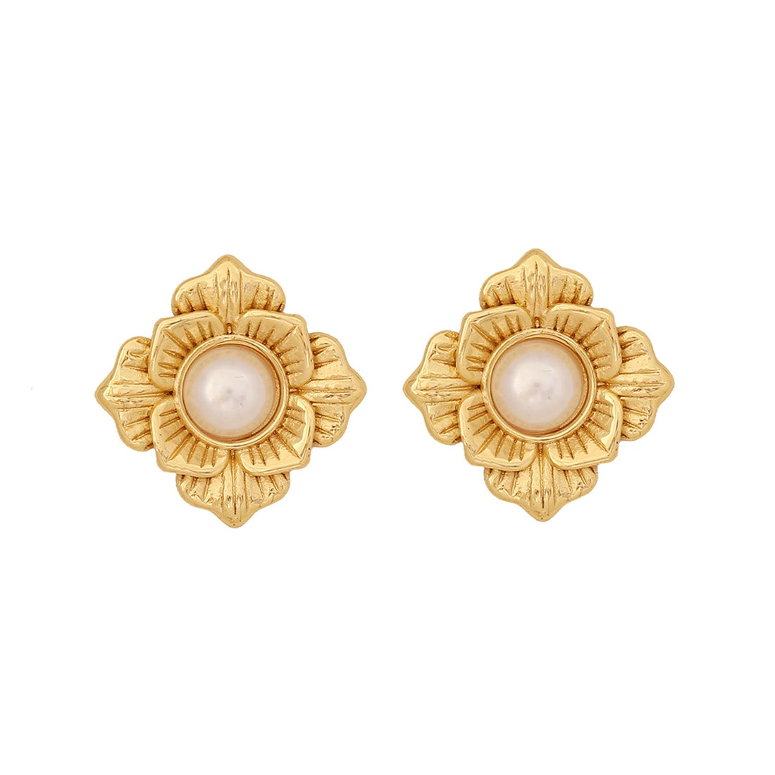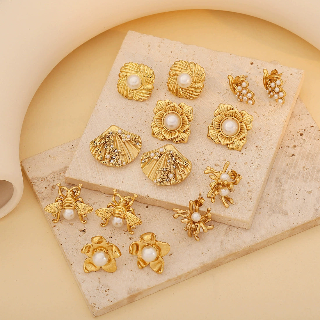 Wholesale Stainless Steel Shell Shape Inlaid Pearl Earrings With Electroplating For Women Fashion Ol Style