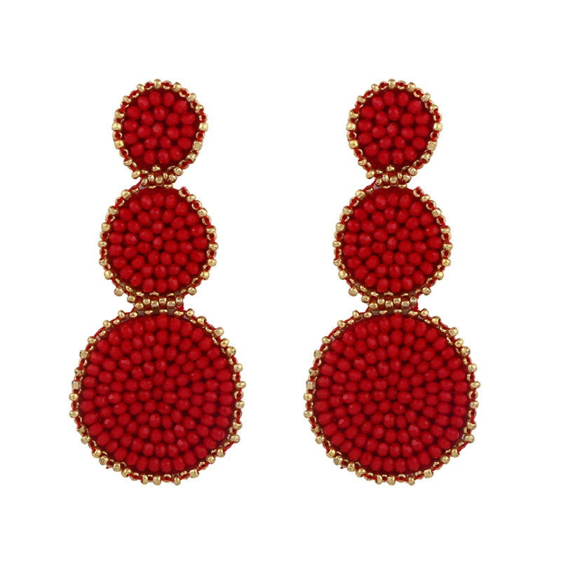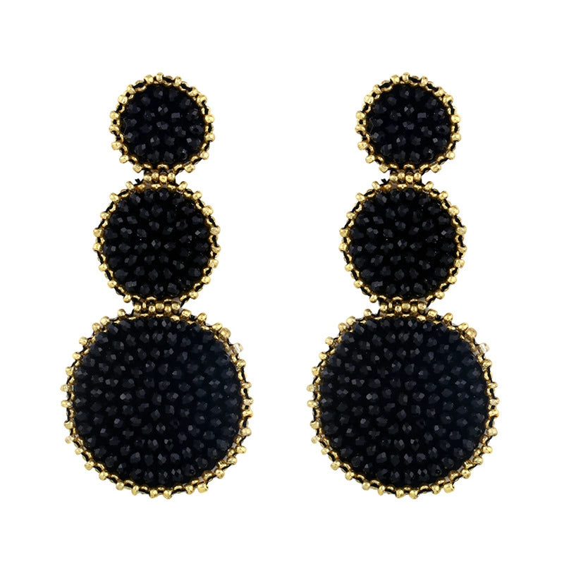 Wholesale Sweet Cute Heart Round Stitching Women's Fashion Earrings With Beads And Alloy Handmade Geometric Style