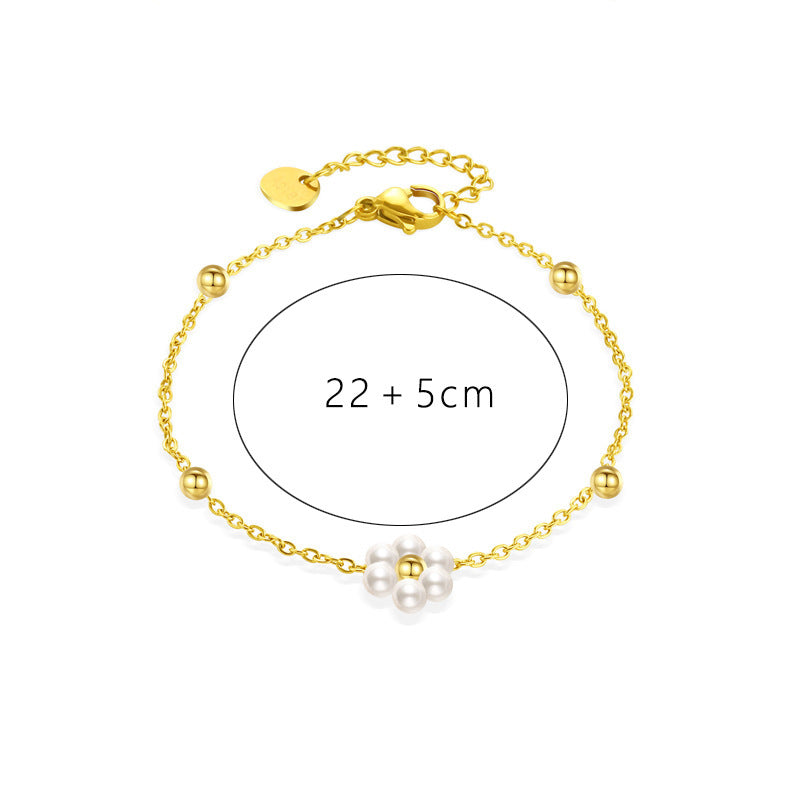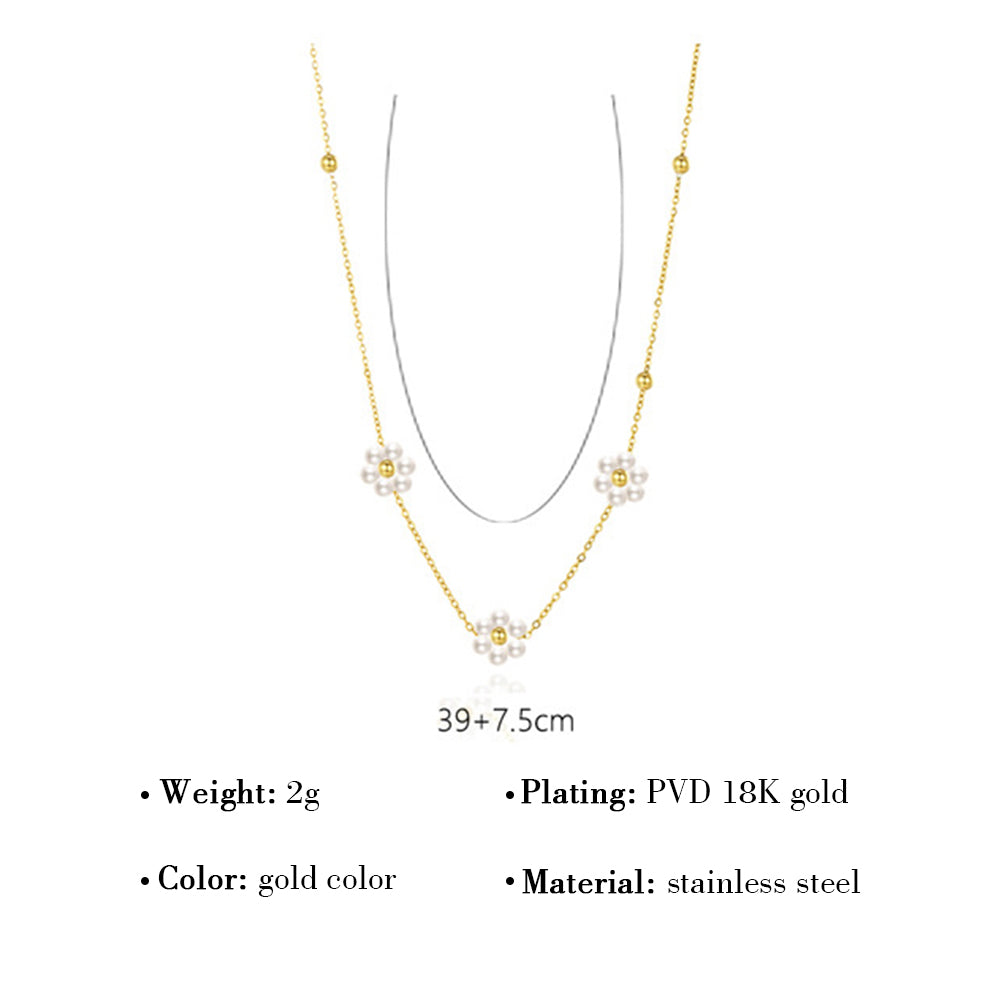 Wholesale Sweet Flower Stainless Steel Beaded Plating Inlay 14k Gold Plated Freshwater Pearl Bracelets Necklace