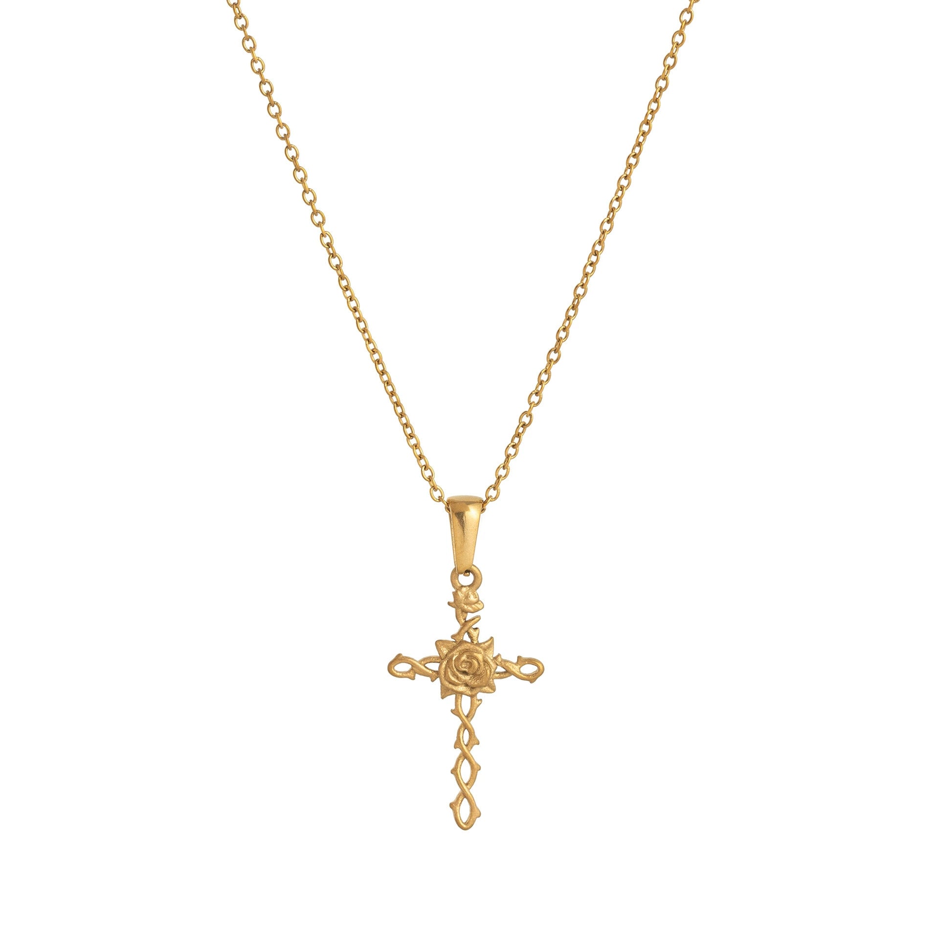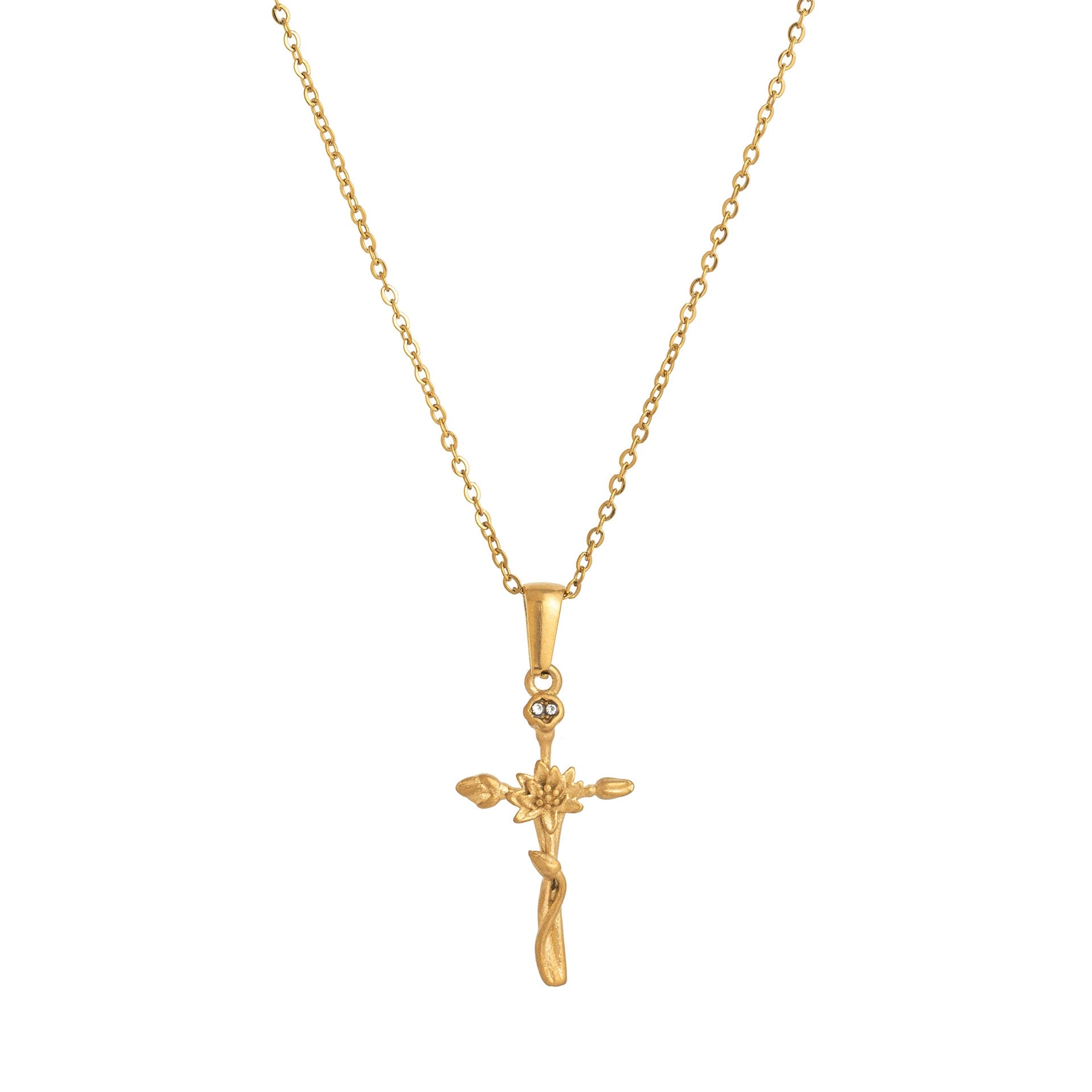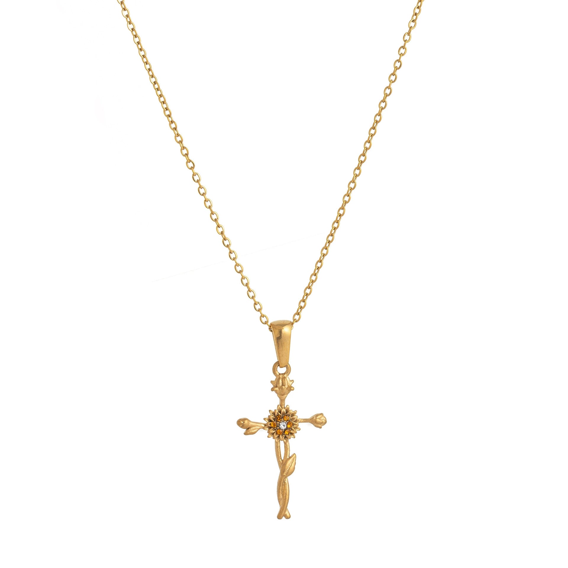 Wholesale Titanium Steel Flower Retro Necklace With 18K Gold Plating