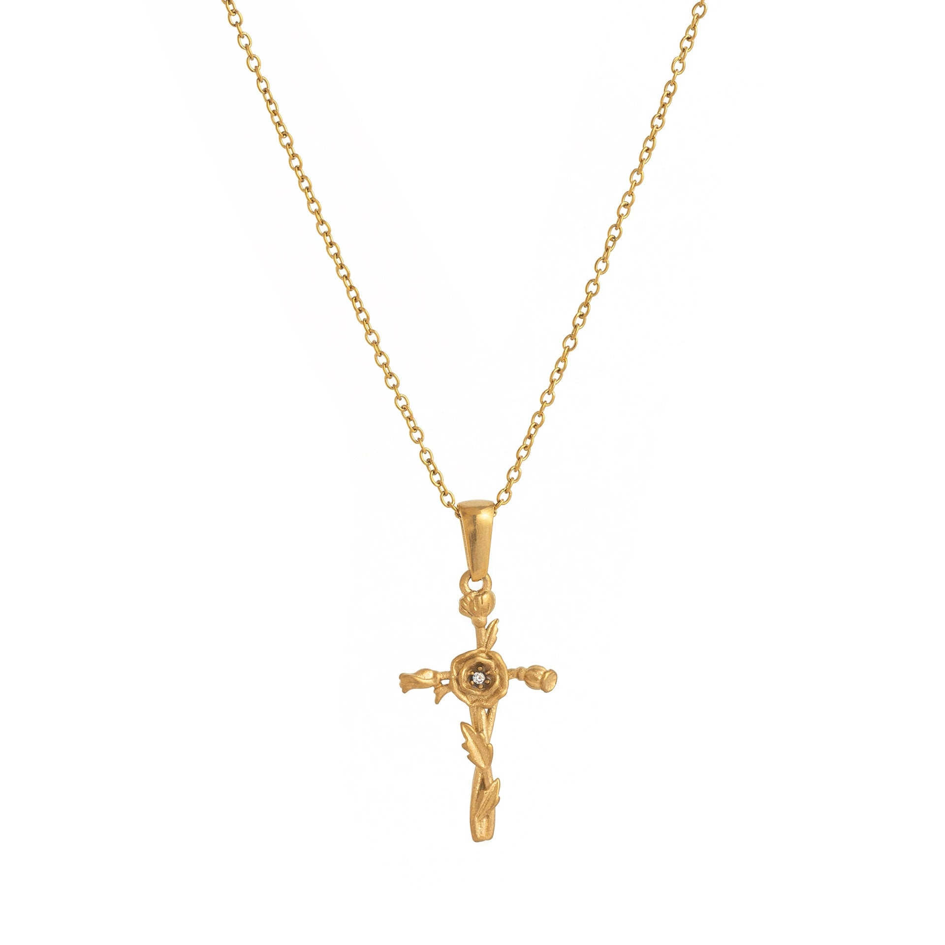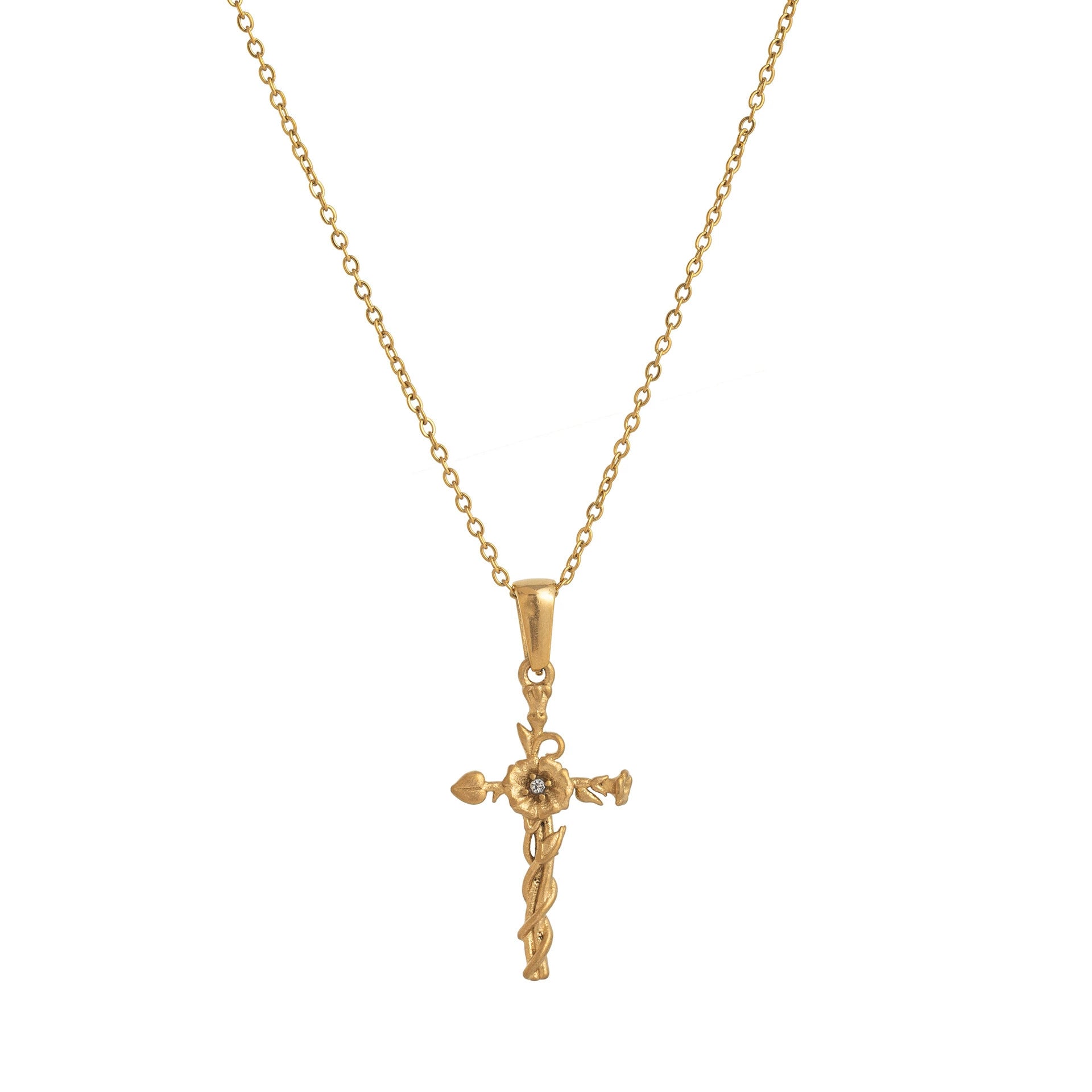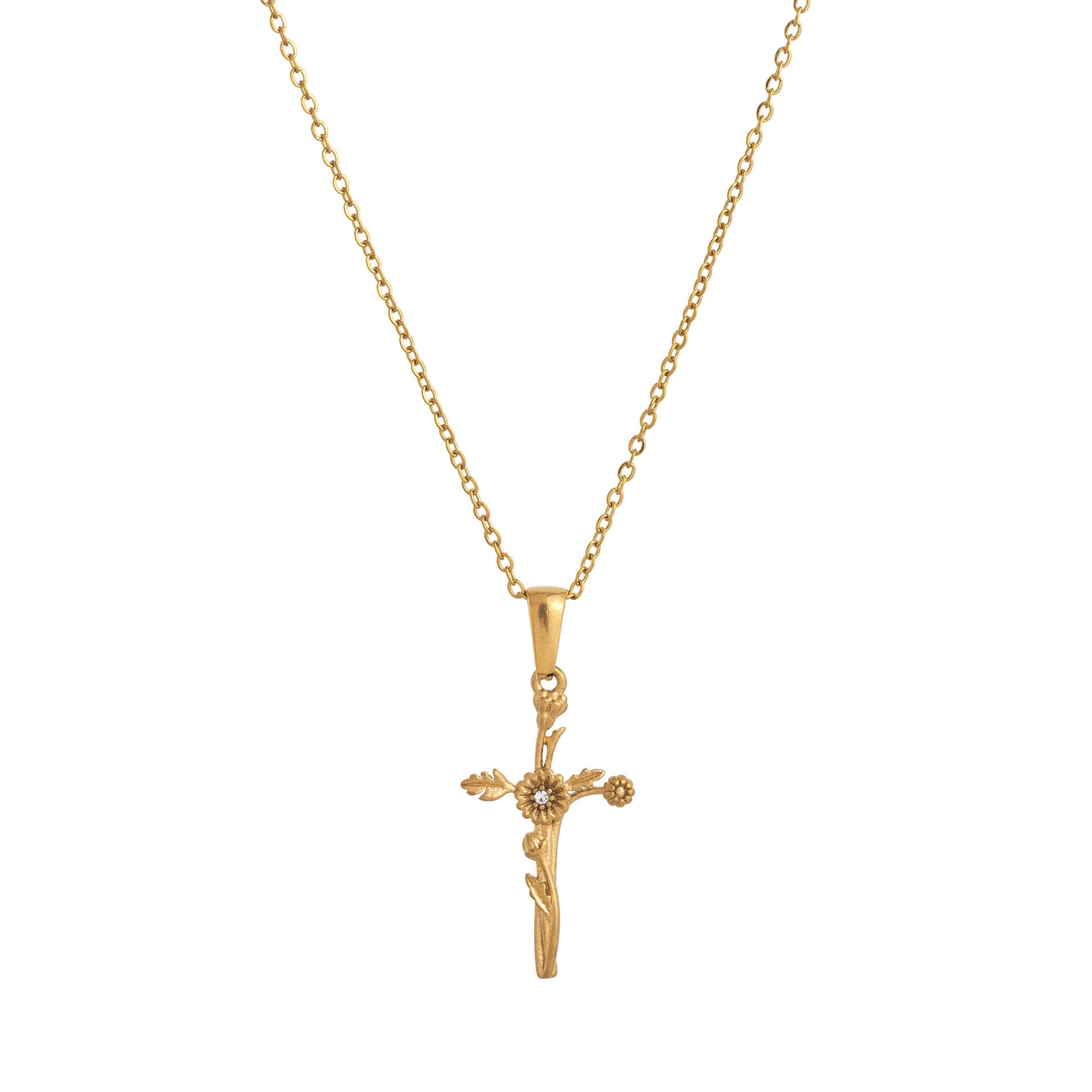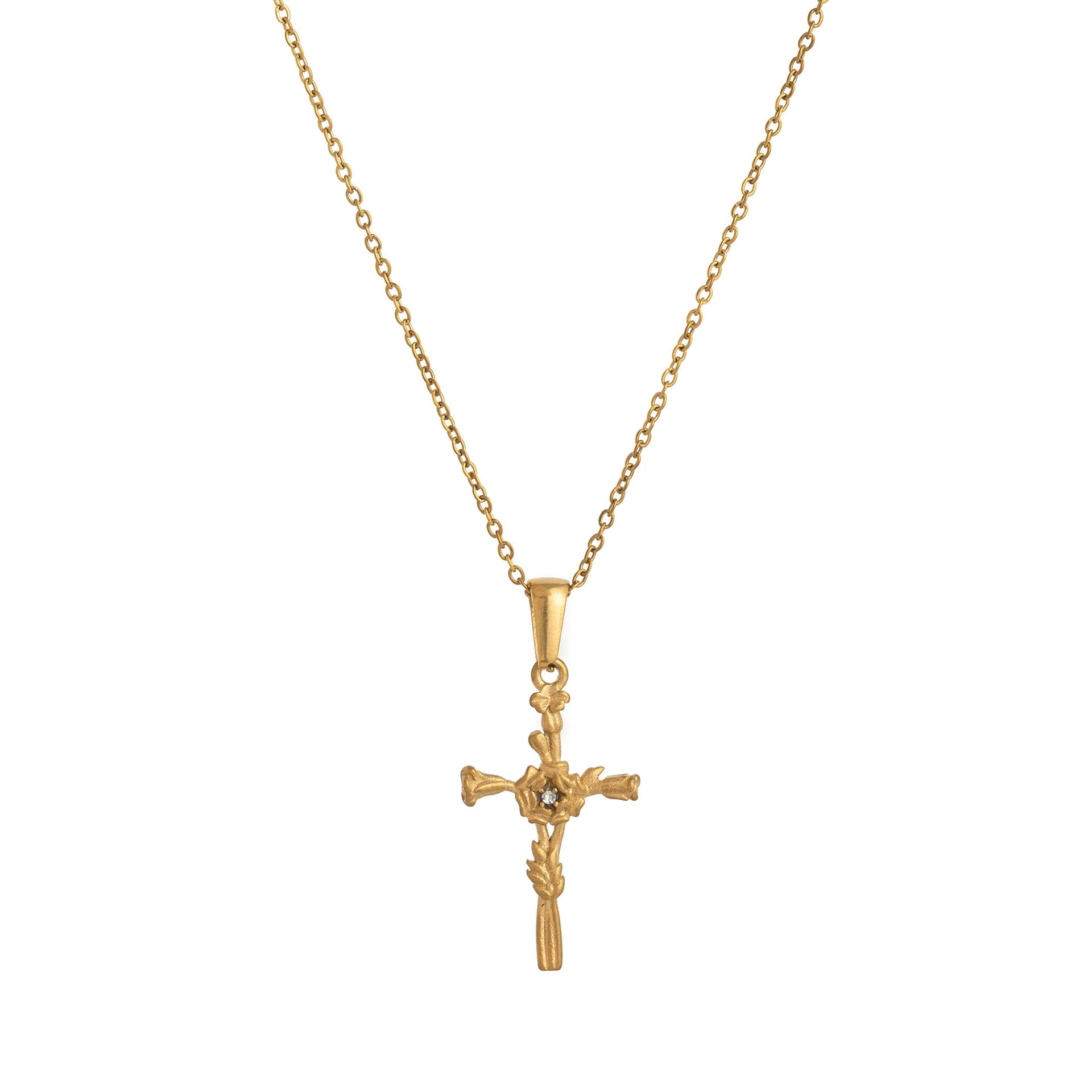 Wholesale Titanium Steel Flower Retro Necklace With 18K Gold Plating