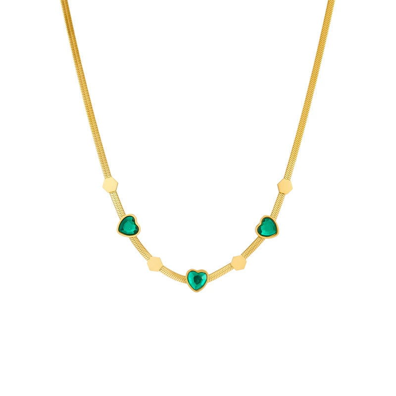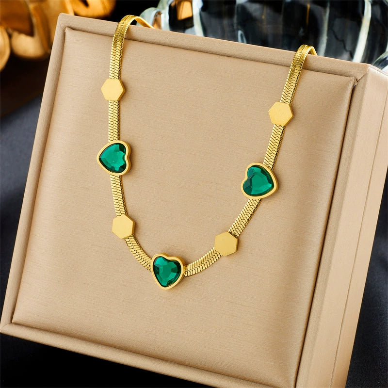 Wholesale Titanium Steel Mixed Gem Inlay Heart Shape Electroplating Geometric Hexagonal Women's Necklace