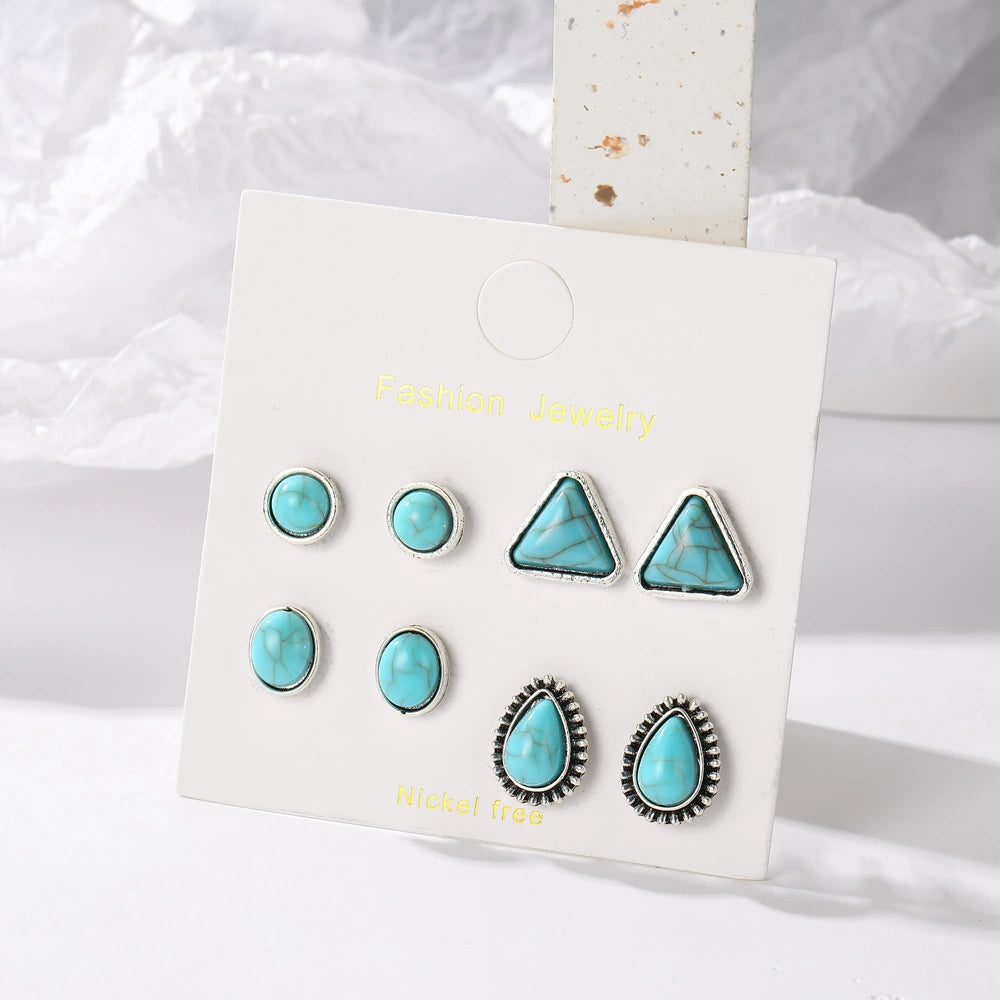 Wholesale Vintage Boho Geometric Round Triangle Drop Shaped Alloy Earrings With Electroplating Design