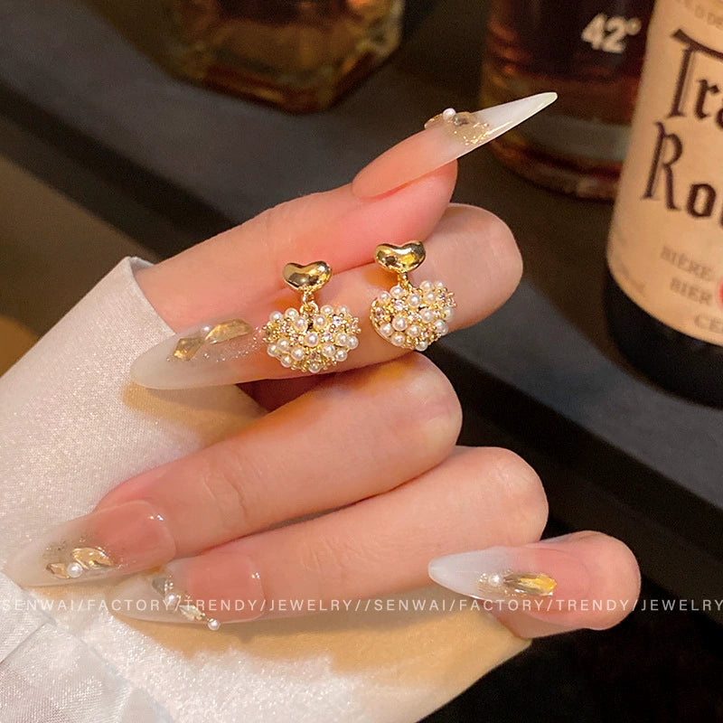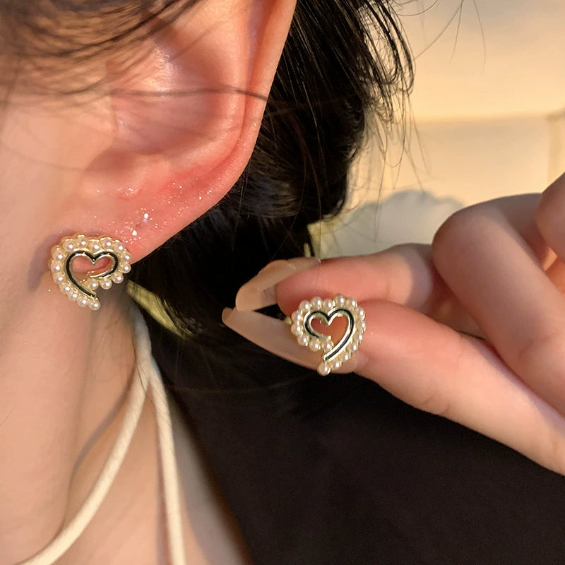 Wholesale Women's Alloy And 925 Silver Heart Shape Electroplated Pearl Love Earrings