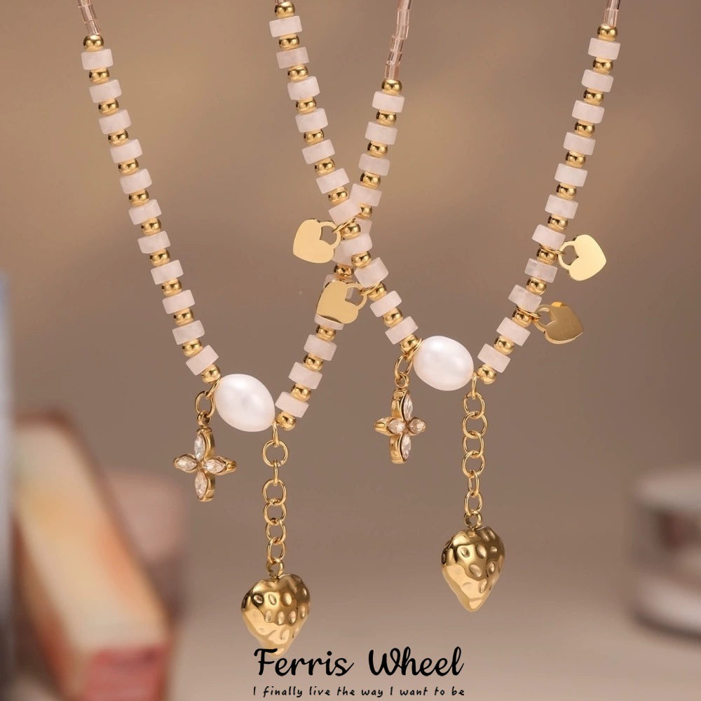Wholesale Women's Fashion Geometric Ferris Wheel Heart Flower Pendant Necklace Made Of Titanium Steel And Stainless Steel With Electroplating