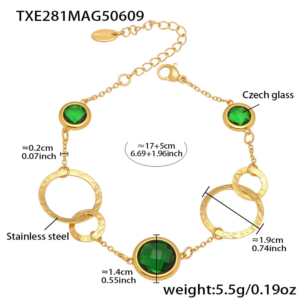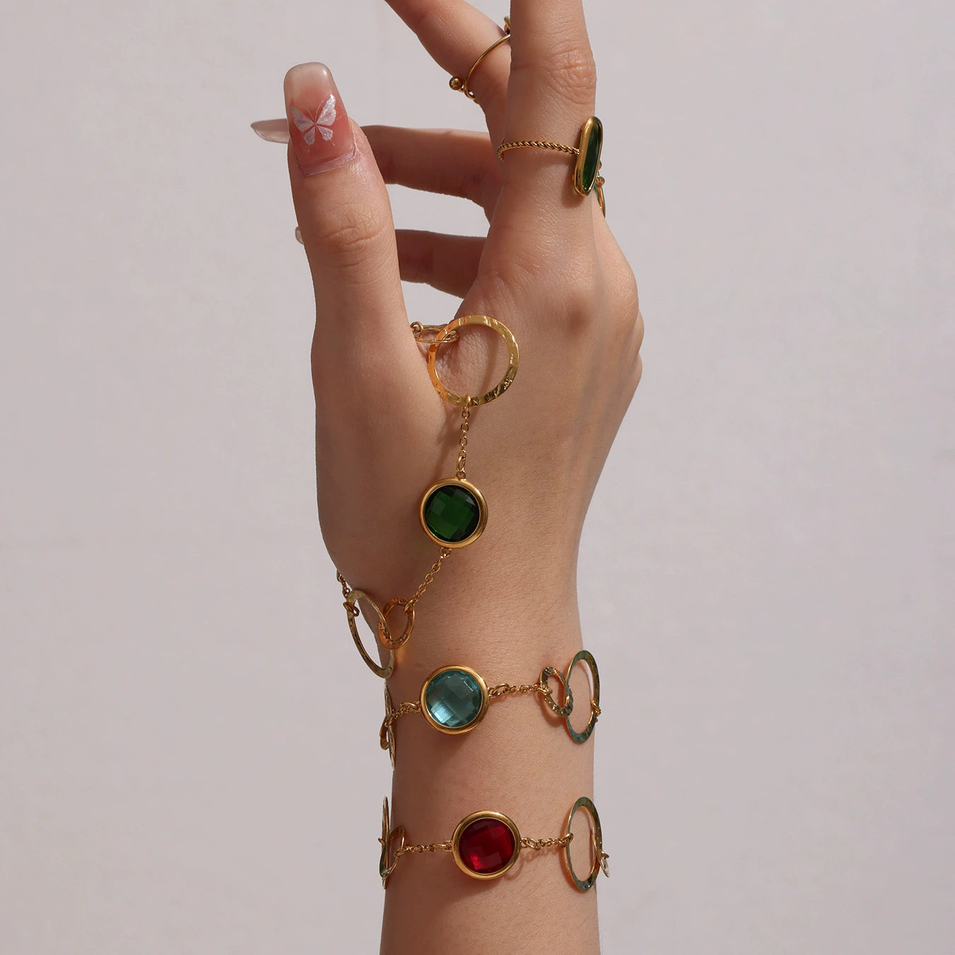 Wholesale Women's Fashion Geometric Stainless Steel And Zircon Electroplated Faceted Glass Stone Hollow Ring Stitching Bracelet