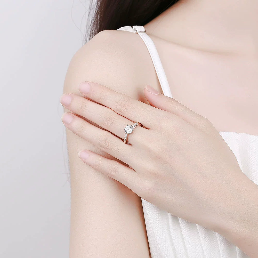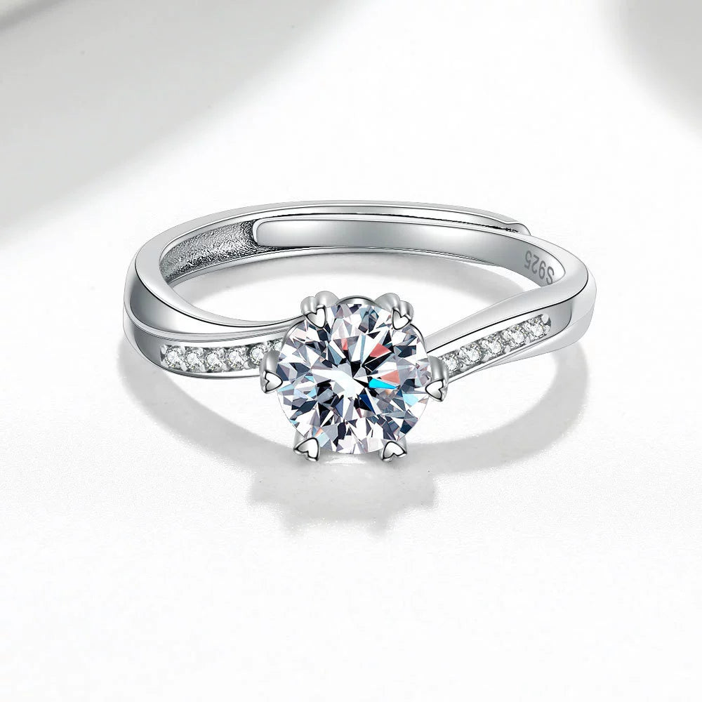 Wholesale Women's Fashion Simple Geometric S925 Sterling Silver Open Ring With Electroplating And Row Diamond