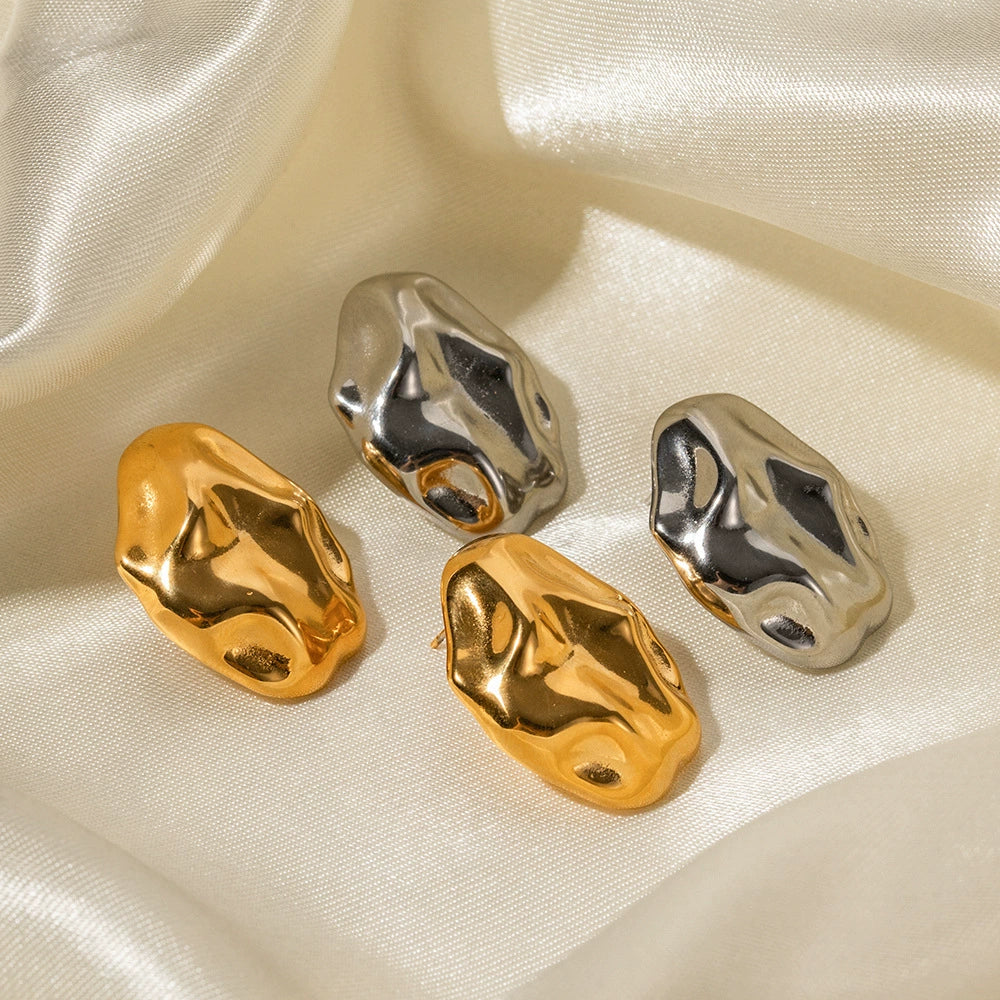 Wholesale Women's Fashion Stainless Steel Irregular Hammered 18K Gold Plated Geometric Earrings