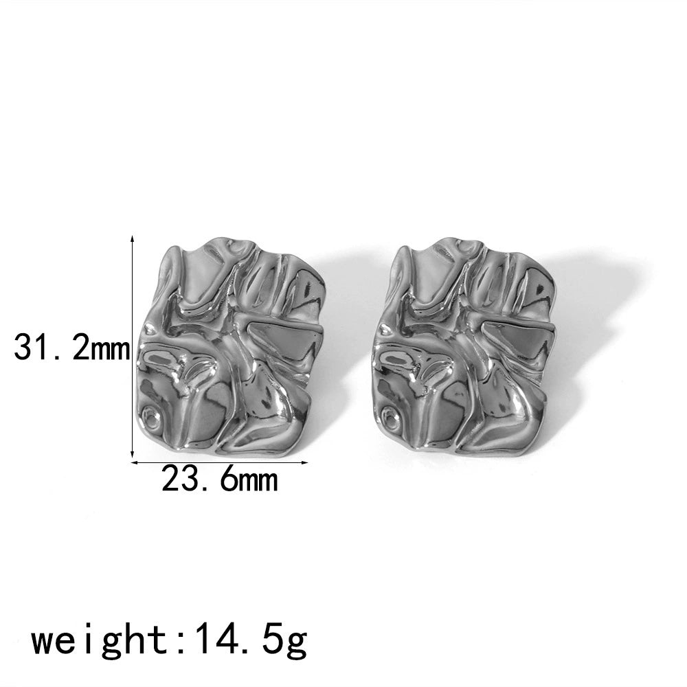 Wholesale Women's Geometric Pleated Texture Stainless Steel Electroplated Earrings