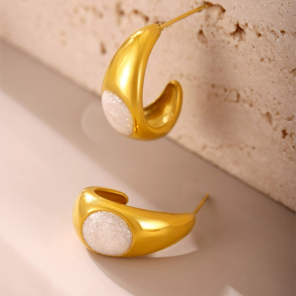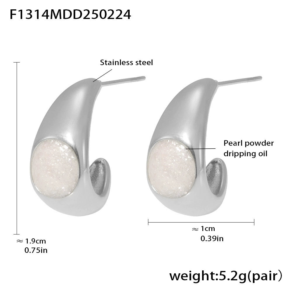 Wholesale Women's Geometric Ushaped And Crescent Cshaped Stainless Steel Pearl Powder Dripping Oil Electroplated 18K Gold Earrings
