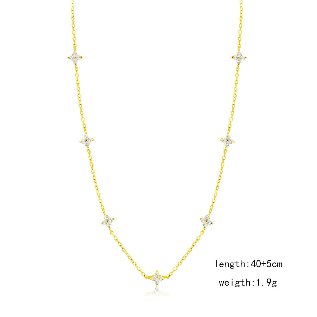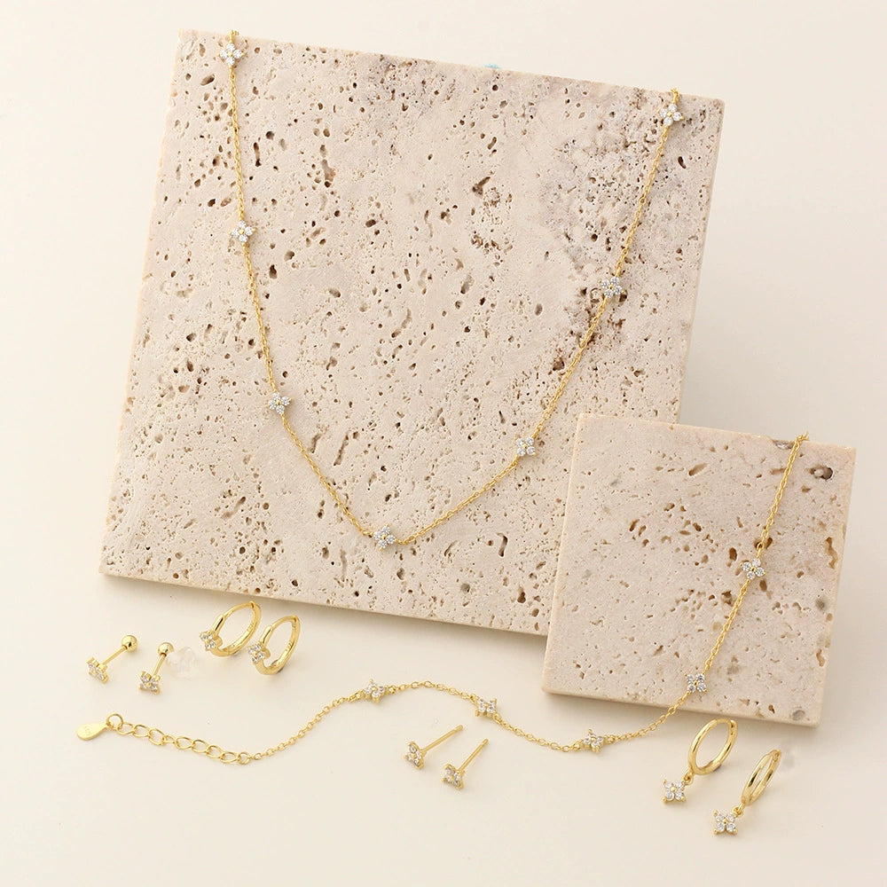 Wholesale Women's Hand Jewelry Set S925 Sterling Silver Fourleaf Clover Pattern Elegant Electroplated Necklace Bracelet Earrings Set