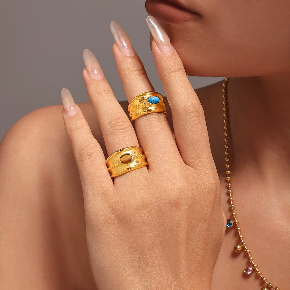 Wholesale Women's Light Luxury Geometric Pattern Stainless Steel Ferris Wheel Ring With Pvd Real Gold Color Retention Electroplating