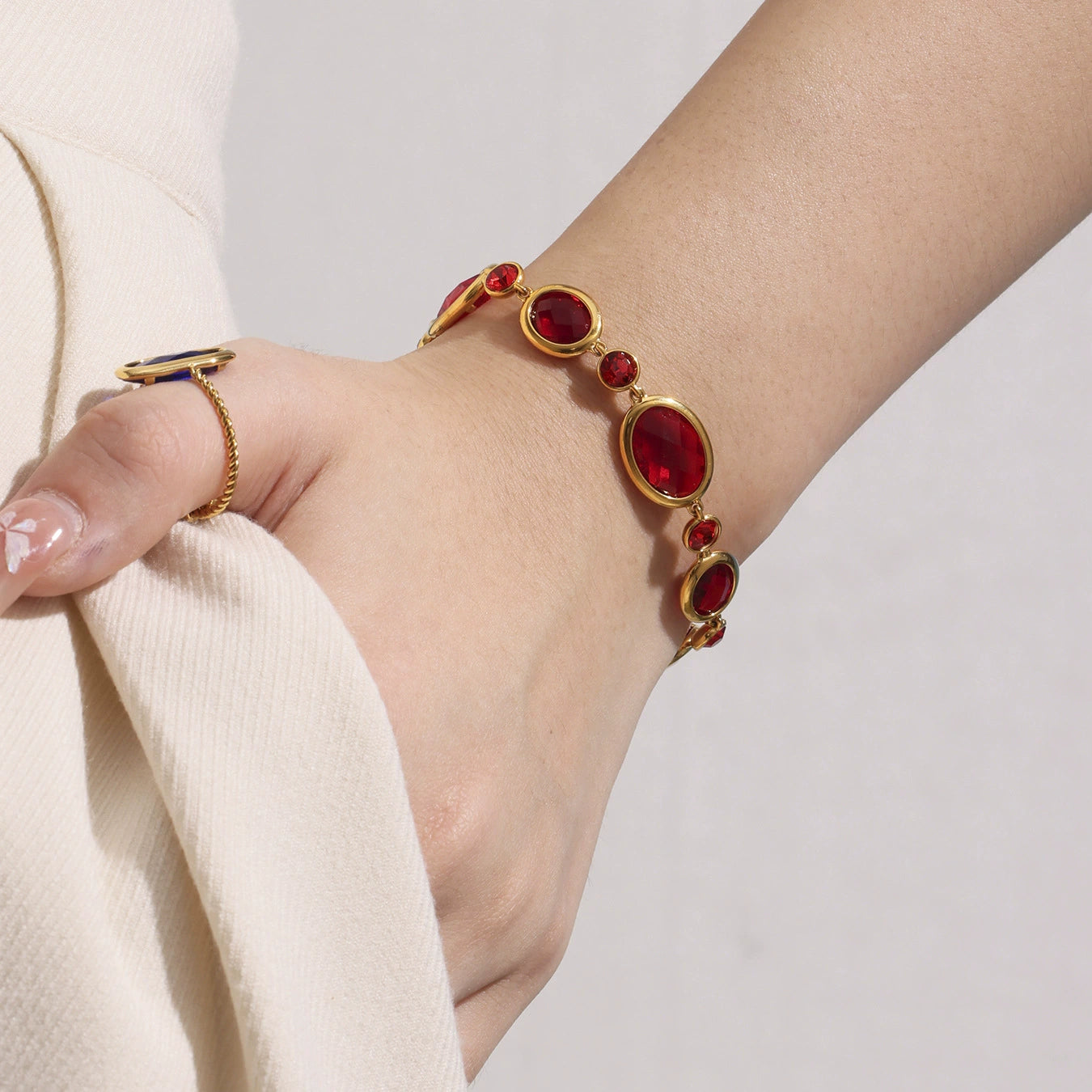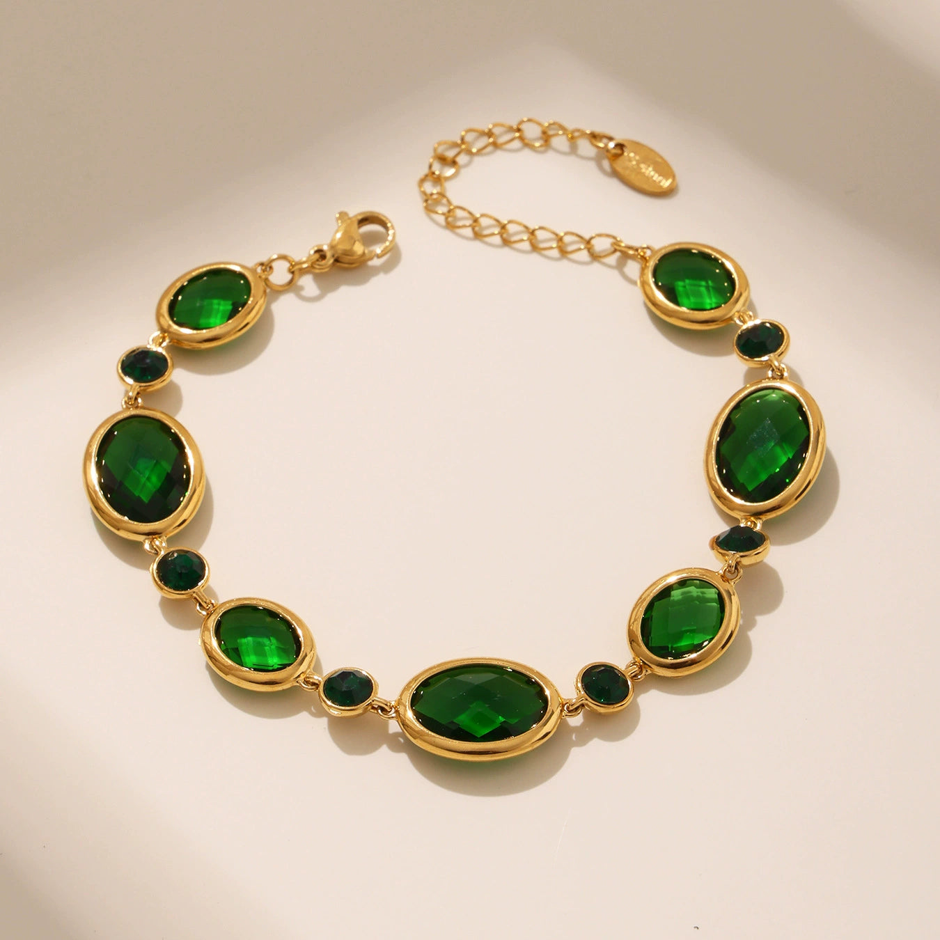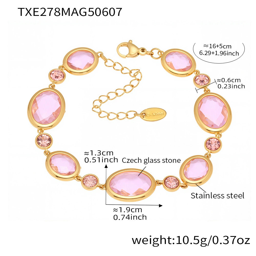 Wholesale Women's Light Luxury Geometric Stainless Steel And Czech Glass Stone Ferris Wheel Oval Faceted Electroplated Bracelet Jewelry