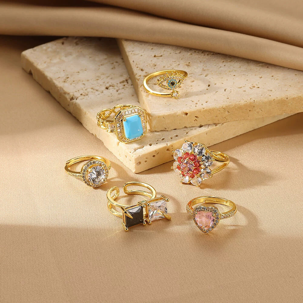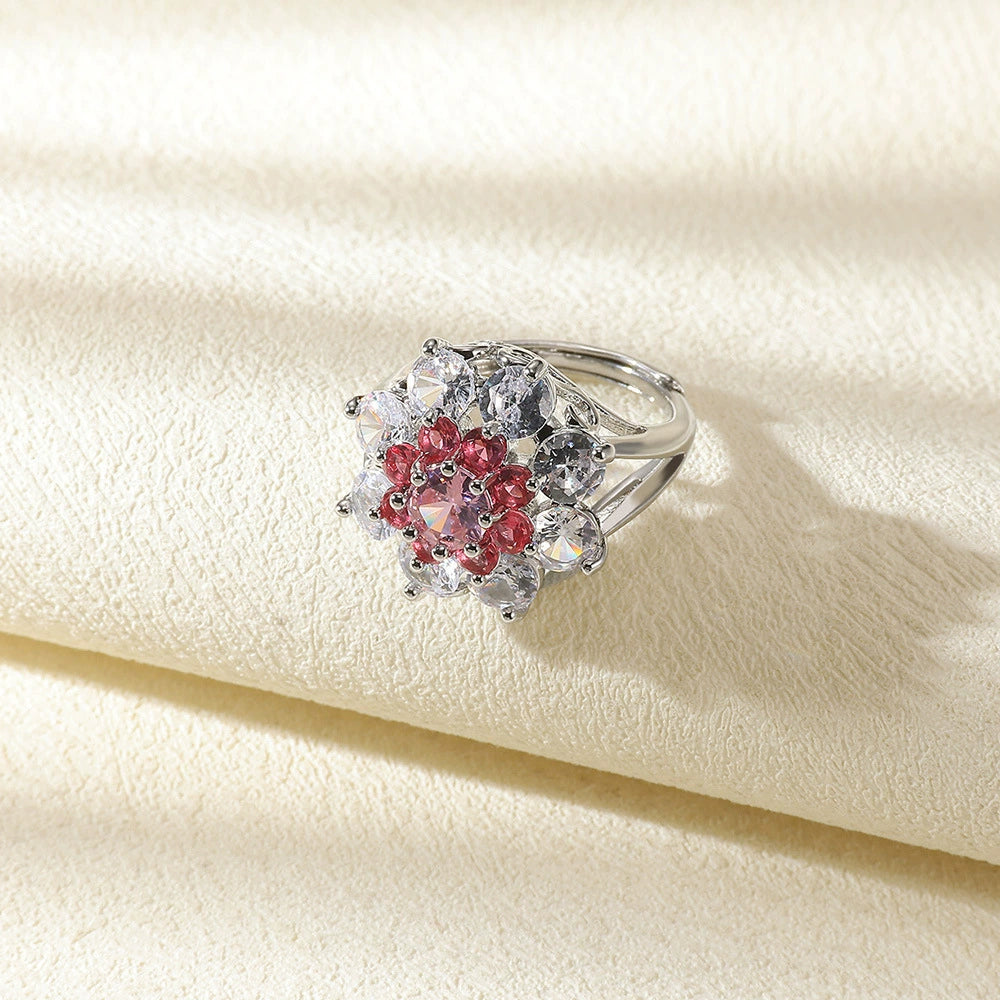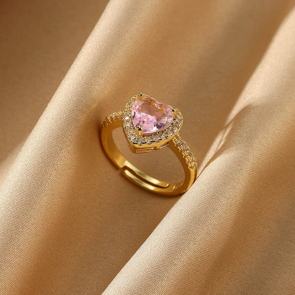 Wholesale Women's Pink Love Zircon Copper Heartshaped Ring Set With Diamonds Retro Versatile Open Light Luxury Palace Style Geometric