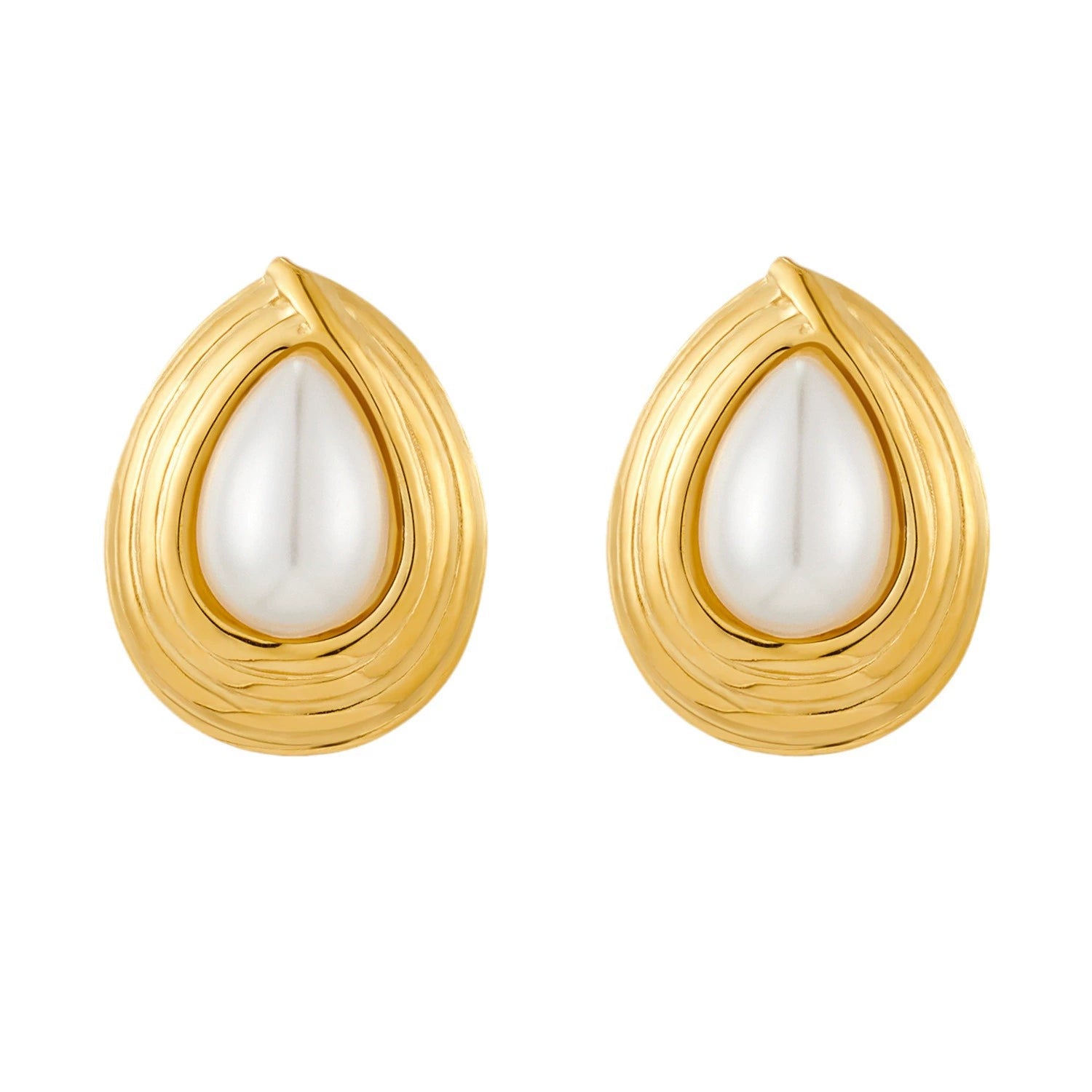 Wholesale Women's Retro Highend Natural Stone Pearl Drop Shape Stainless Steel Electroplating Earrings Jewelry Accessories