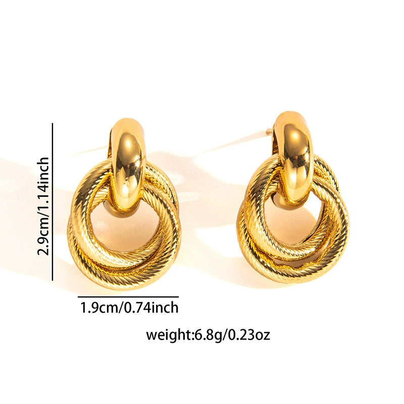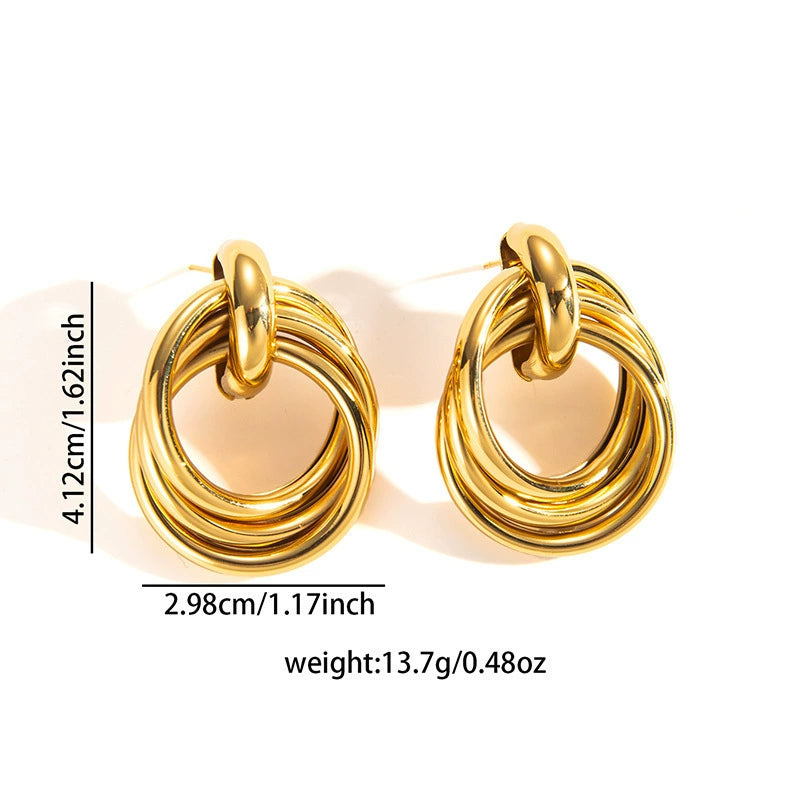 Wholesale Women's Retro Light Luxury Geometric Titanium Steel Hoop Earrings With Electroplating