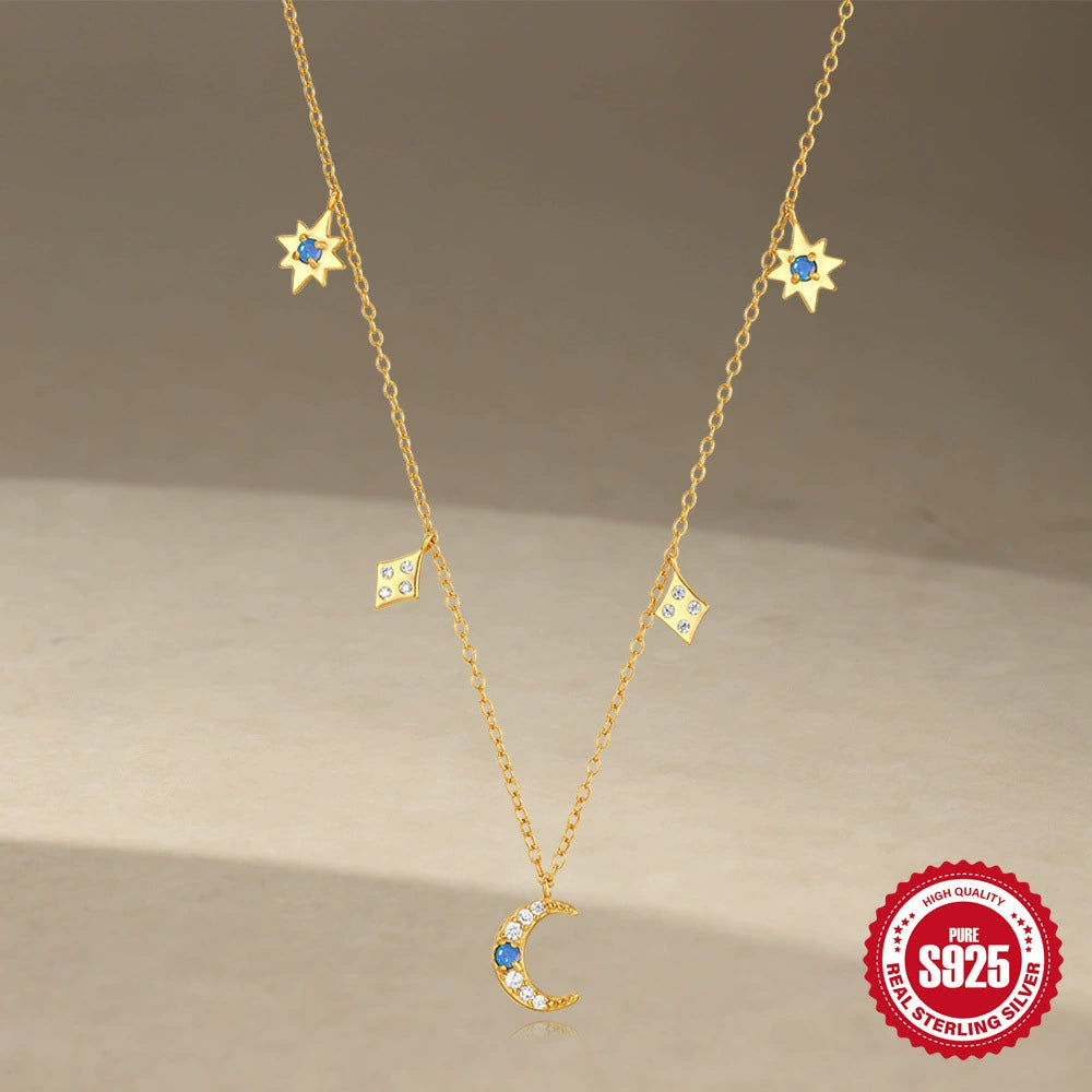 Wholesale Women's S925 Sterling Silver Classic Stacked Star Moon With Opal Necklace Geometric Pattern Electroplated O Chain Clavicle Chain