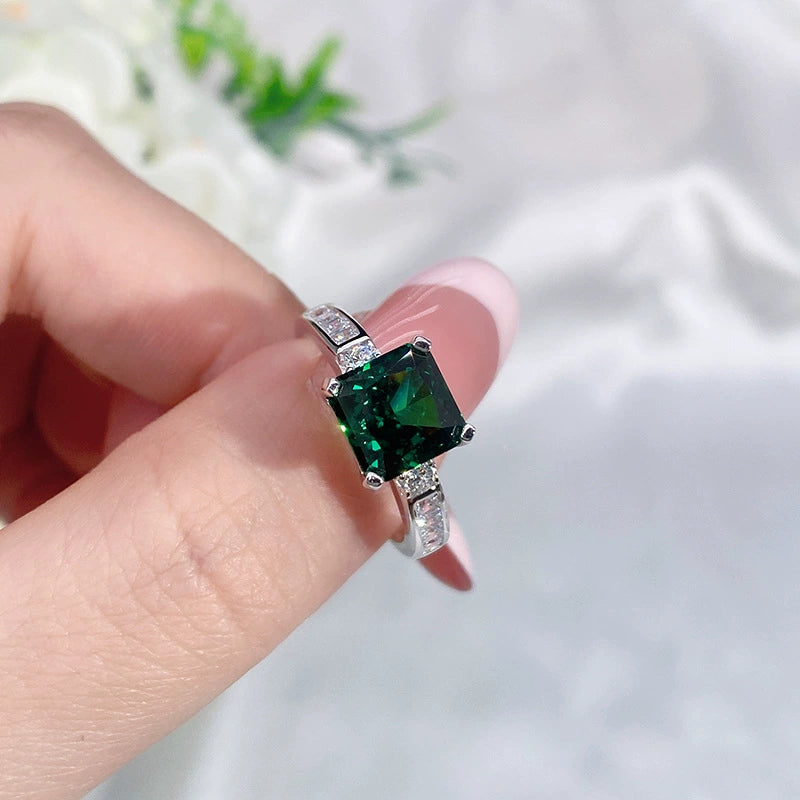 Wholesale Women's S925 Sterling Silver Geometric Style Emerald Cut Zircon Ring With High Carbon Diamond