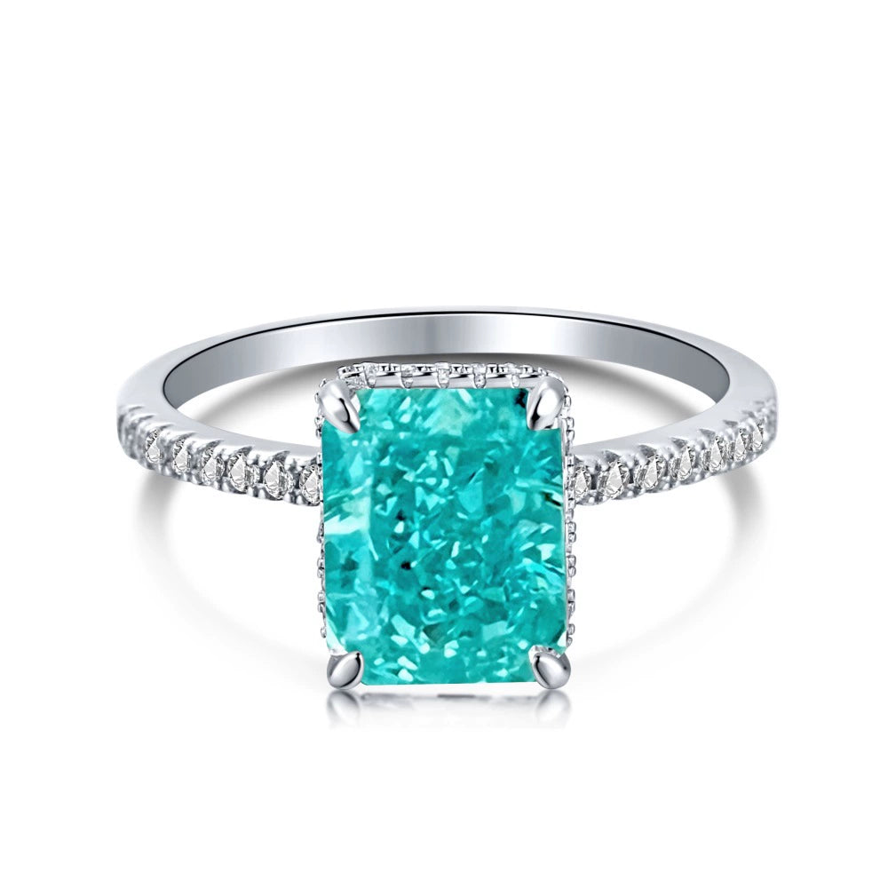 Wholesale Women's S925 Sterling Silver Ring Hand Inlaid High Carbon Diamond With Ice Flower Cut 810 Rectangular Sugar Shape Geometric Pattern And Electroplating Finish