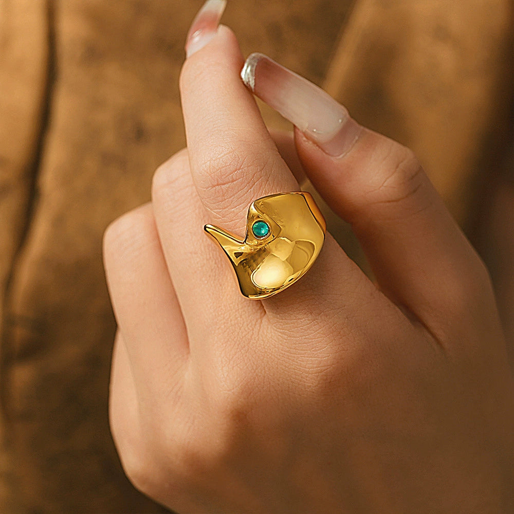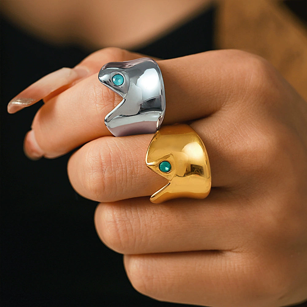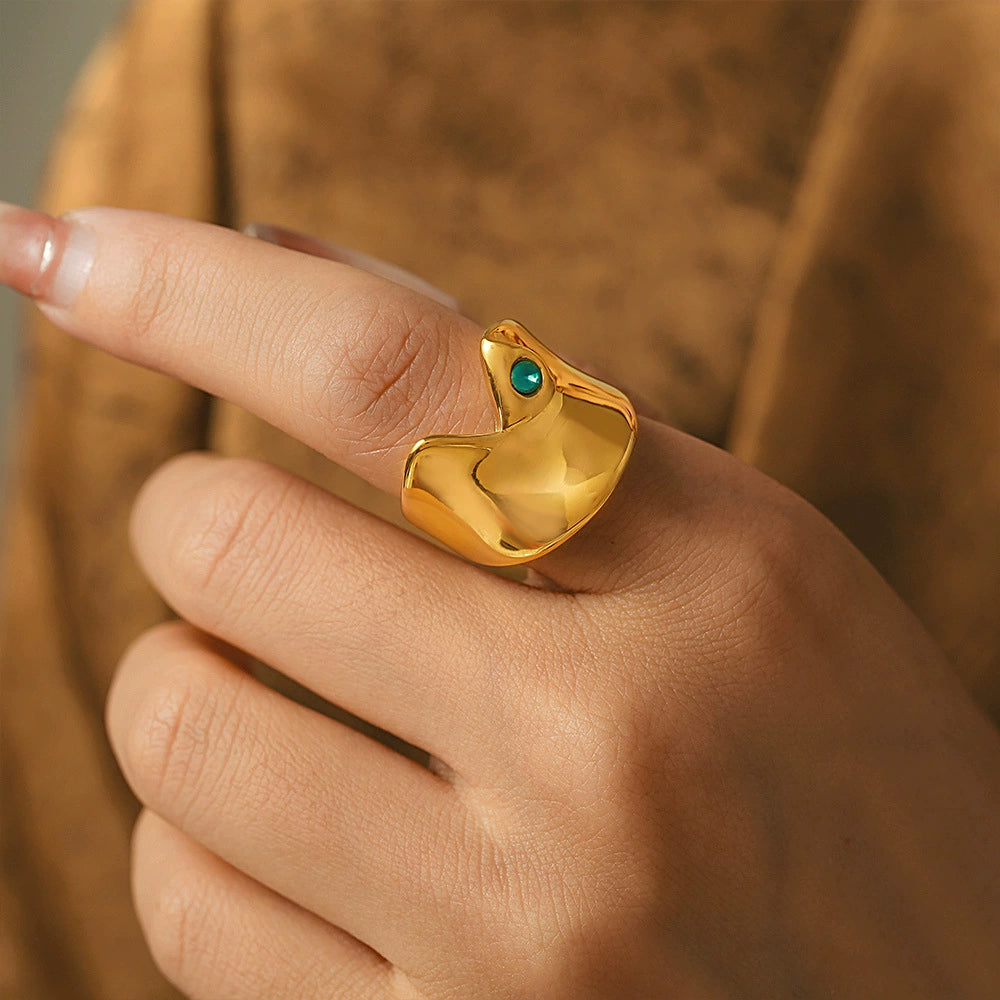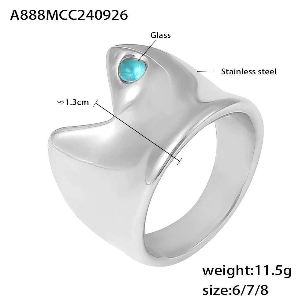 Wholesale Women's Stainless Steel And Glass Geometric Arc Concave Ring With Electroplating Lake Blue Niche Fashion