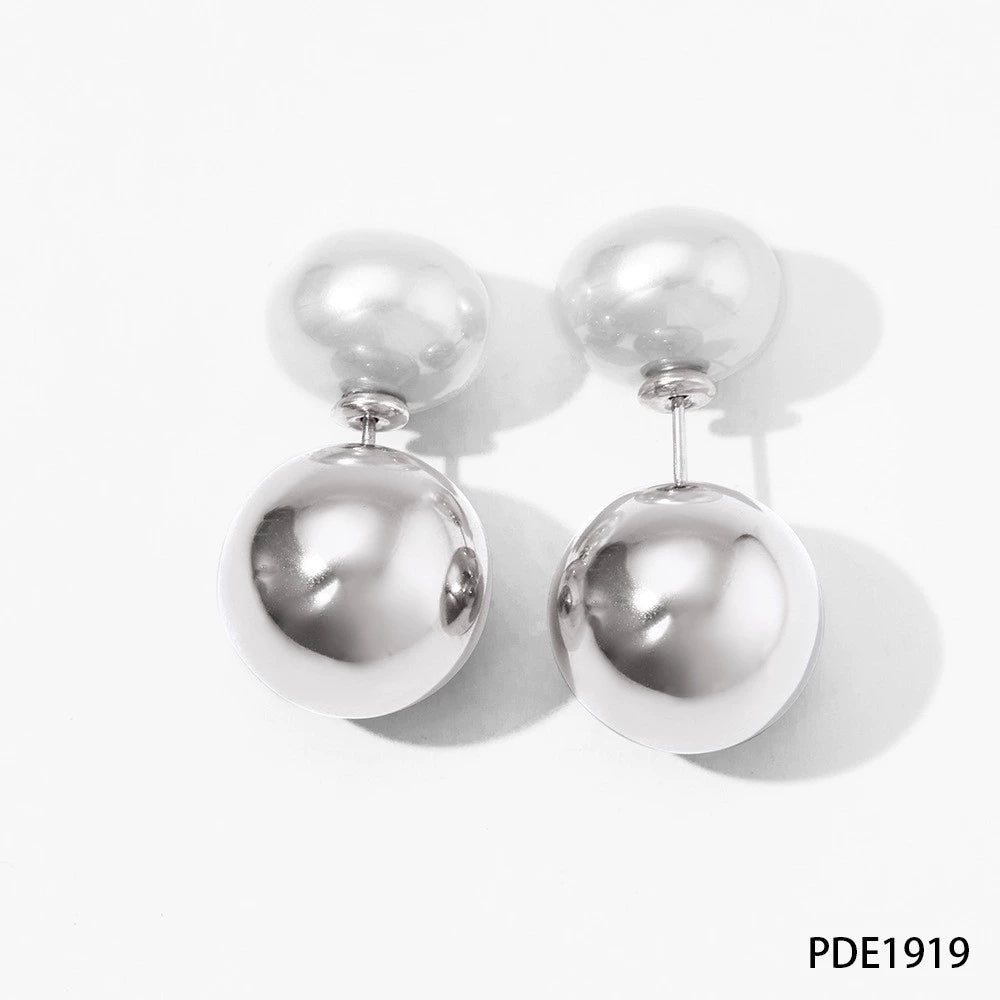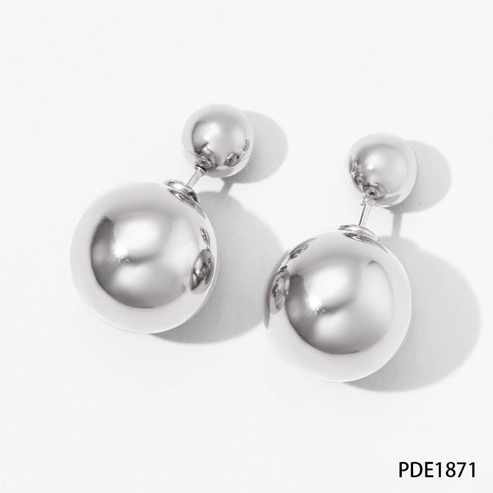 Wholesale Women's Stainless Steel Hollow Ball Earrings With Geometric Pattern And Electroplating Simple Light Luxury Front And Back Two Wear