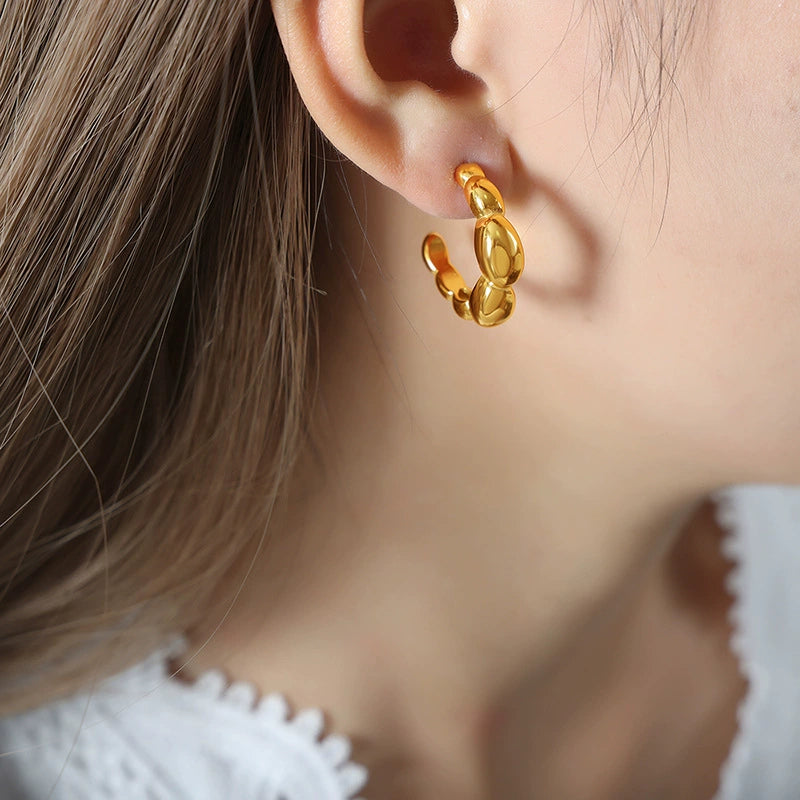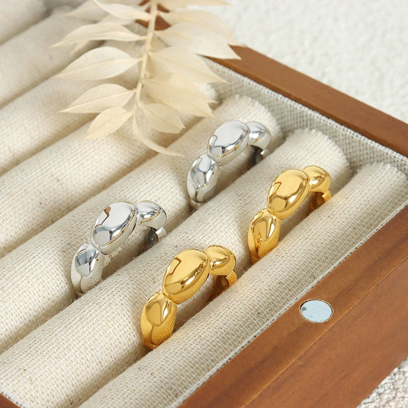 Wholesale Women's Titanium Steel Geometric Open Ring And Earrings With Electroplating Baroque Punk Hip Hop Style Rice Beads Non Fading