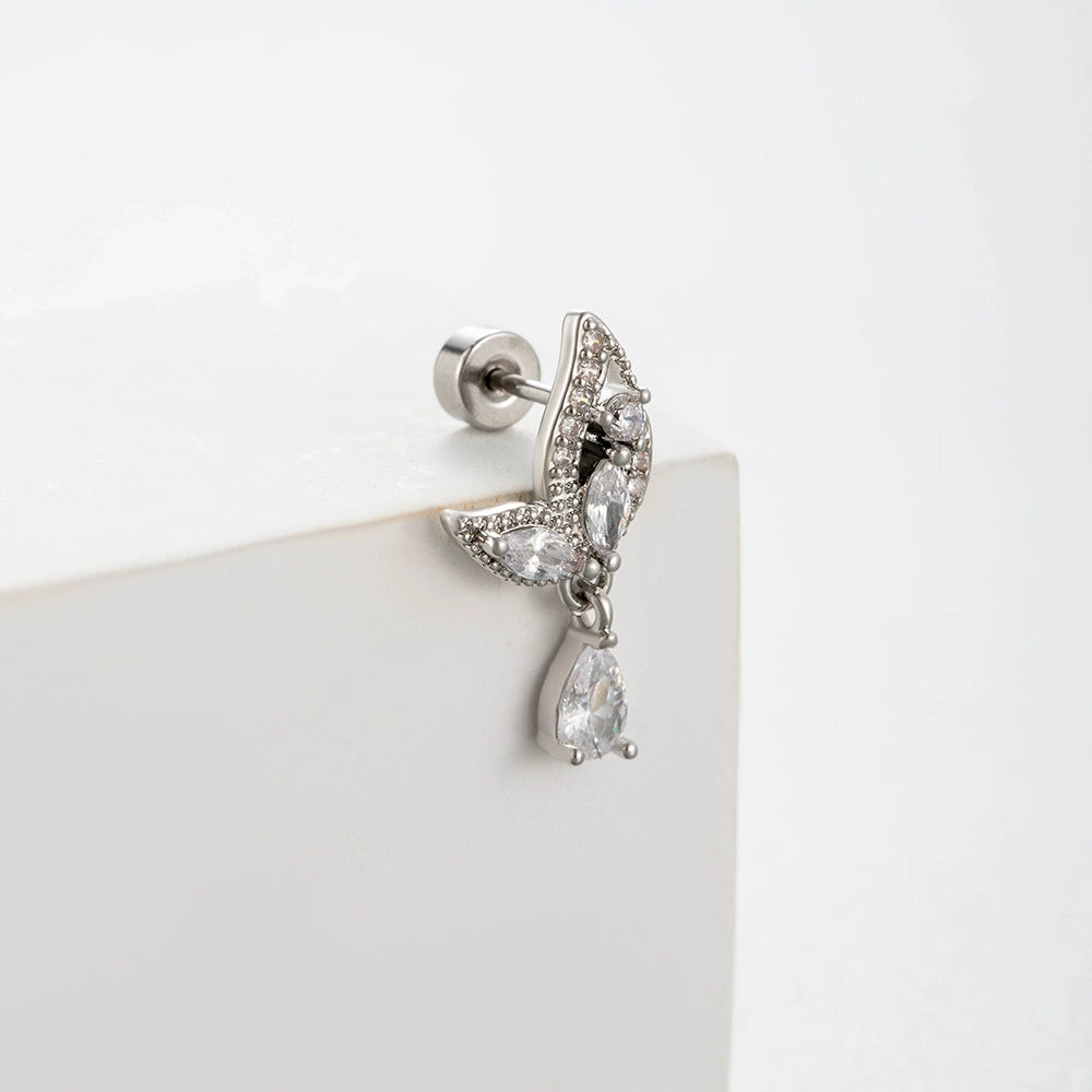 Wholesale Women's Titanium Steel Love Cross Water Drop Zircon Earrings