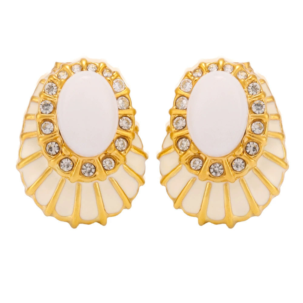 Wholesale Women's Vintage Light Luxury Geometric Diamondencrusted Enamel 18K Goldplated Stainless Steel Earrings