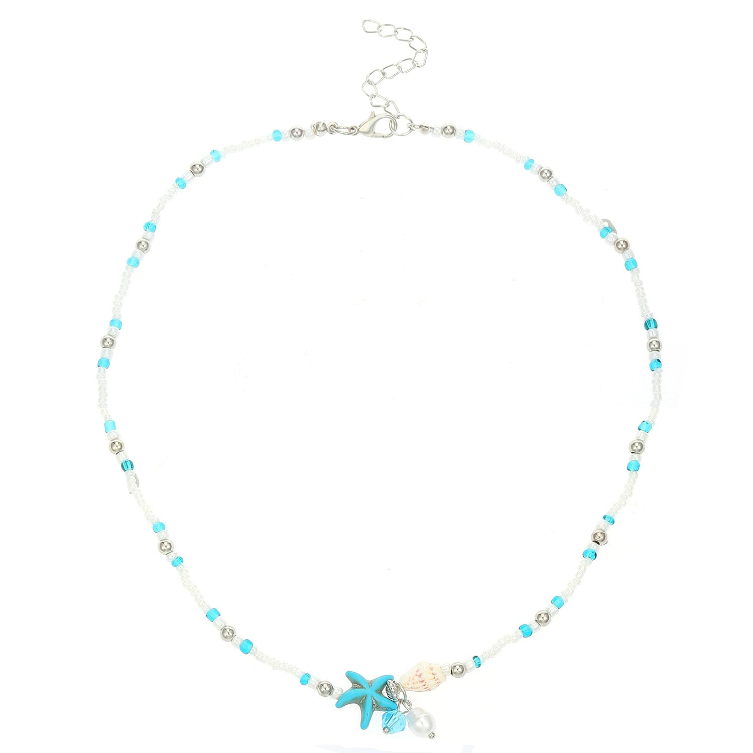 Women's Bohemian Starfish Conch Beaded Shell Clavicle Chain Handmade Alloy Necklace