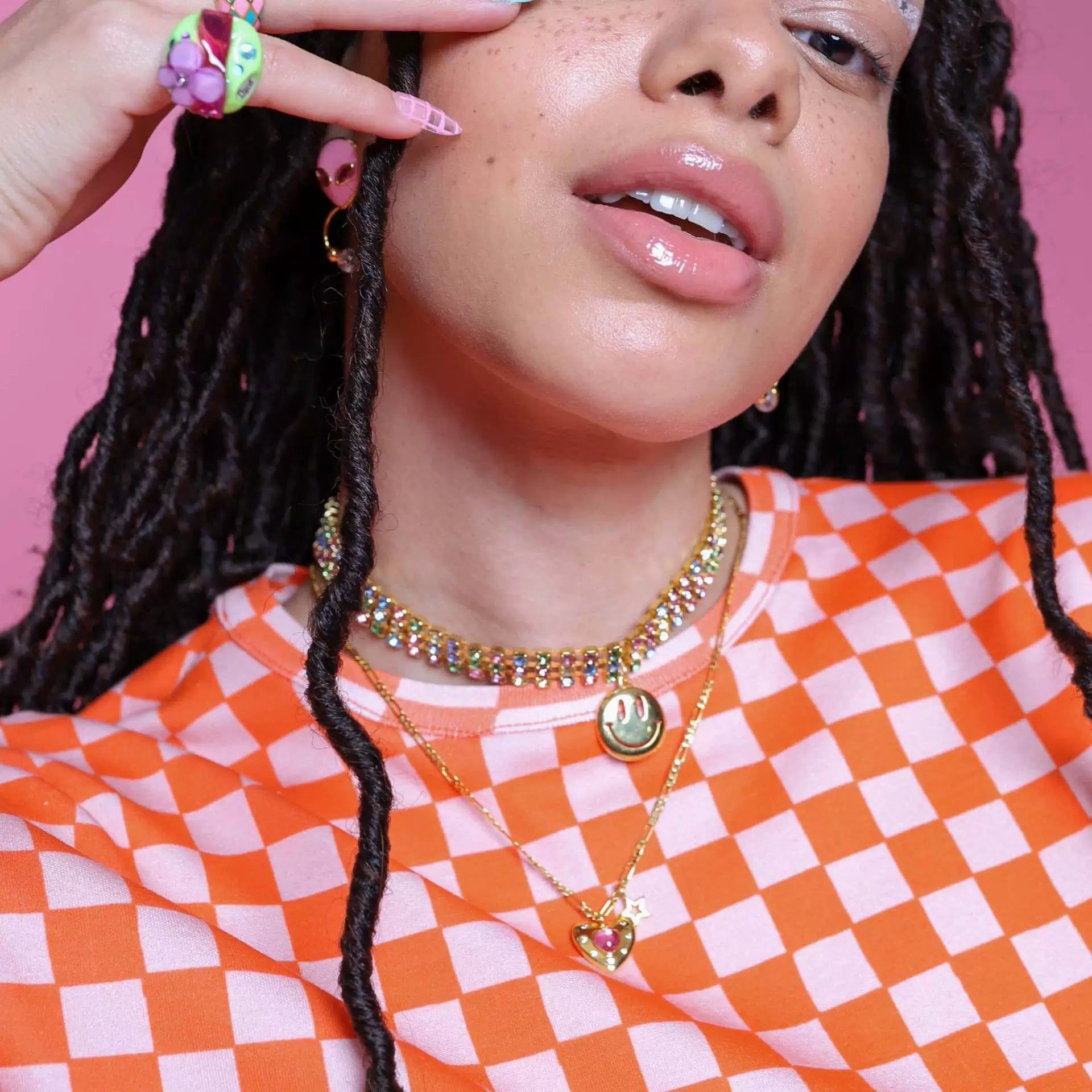 Women's Copper Heart Shape Diamond Mixed Gem Inlay Necklace